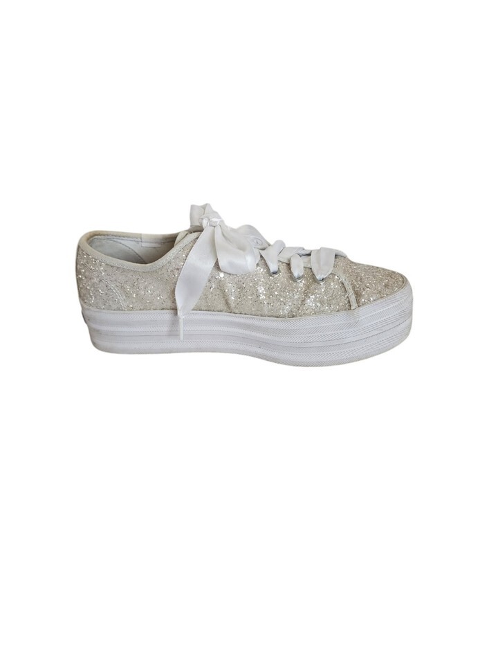 Keds x Kate Spade New York Triple Glitter Ivory Gold Platform Sneakers Sz 8.5