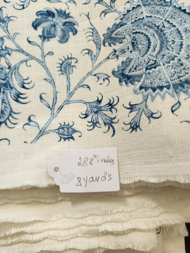 Lee Jofa X Sara Bartholomew "Indiennes" Floral Blue Delft Fabric 8 Yards Total
