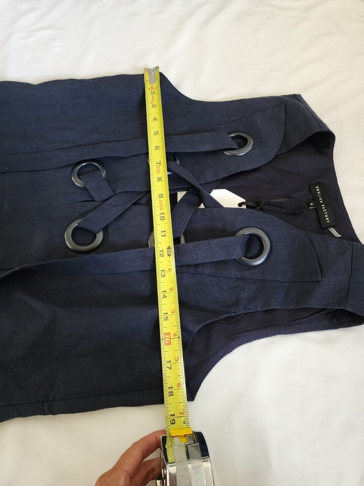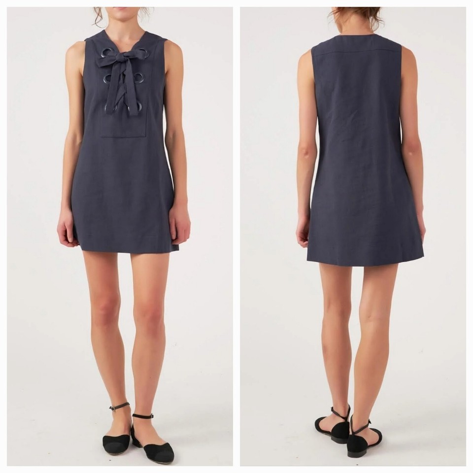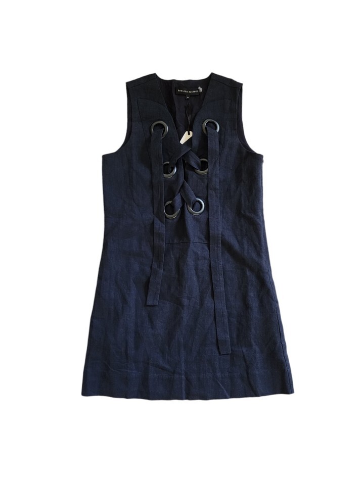 English Factory Womens Linen Lace-Up Front Closure Mini Dress Size M Navy