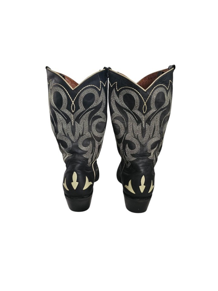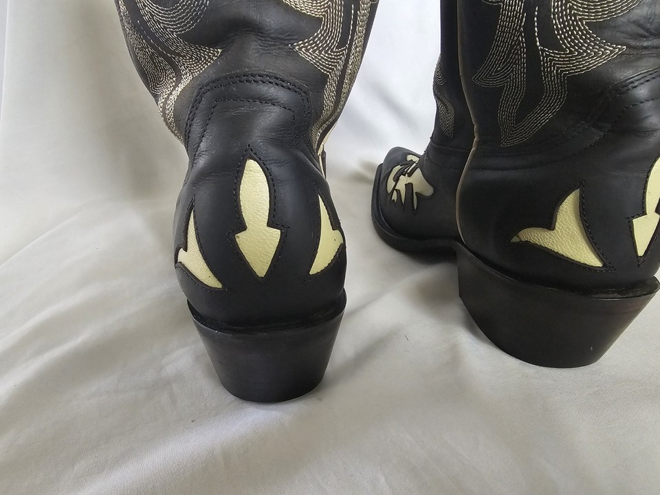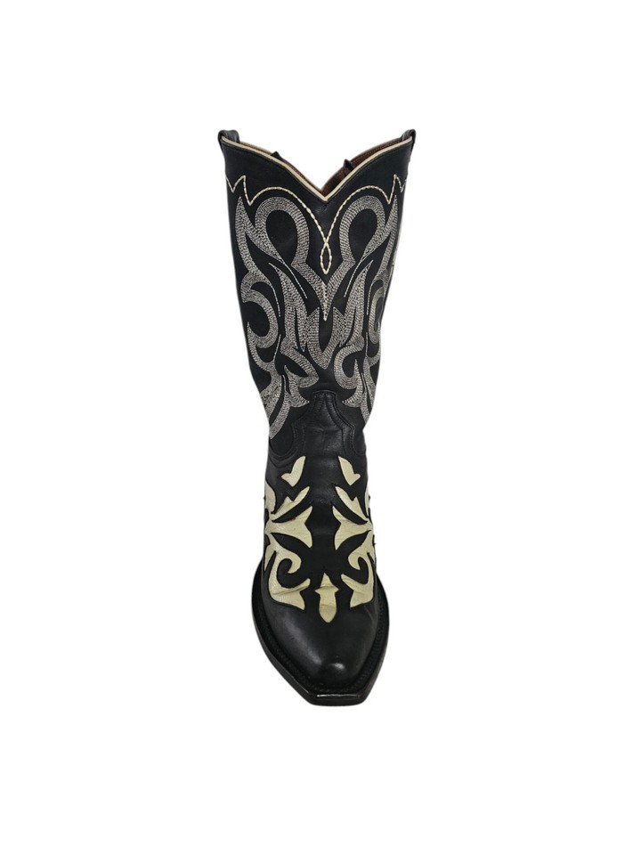 Johnny Ringo Snip Toe Cut Out Inlay Ornate Black/White Western Cowgirl Boots 7.5