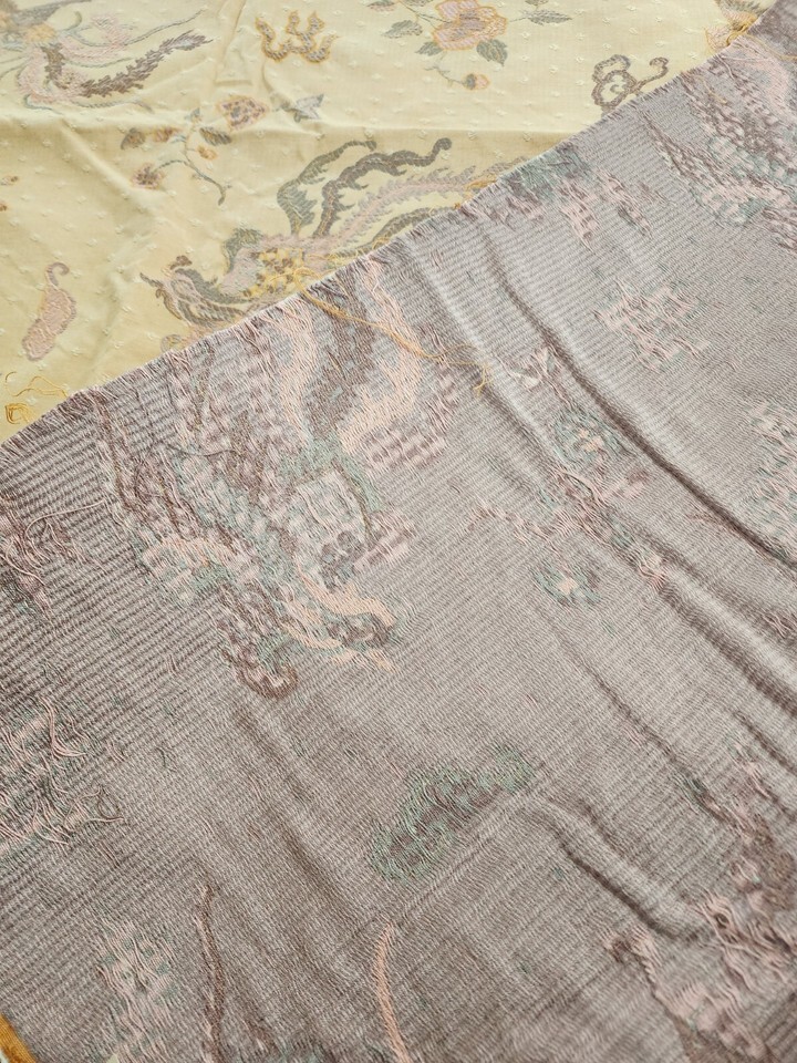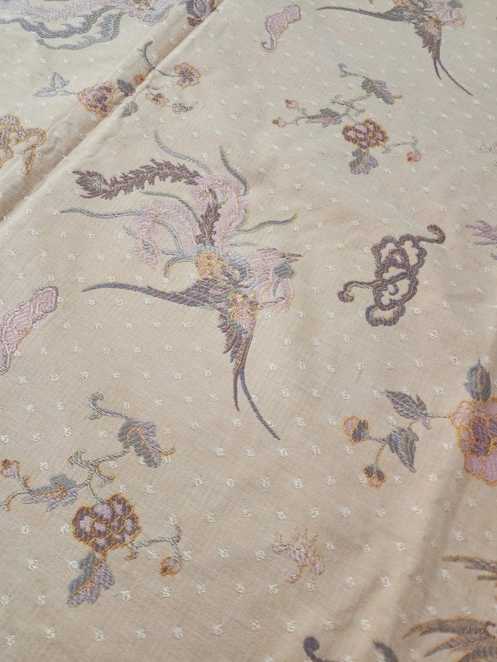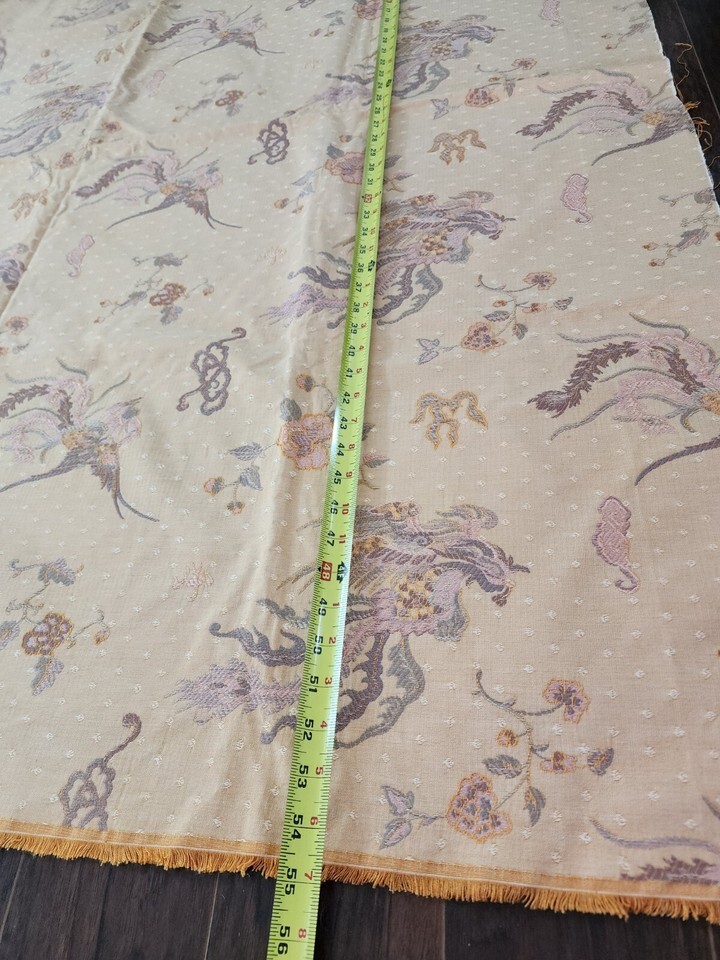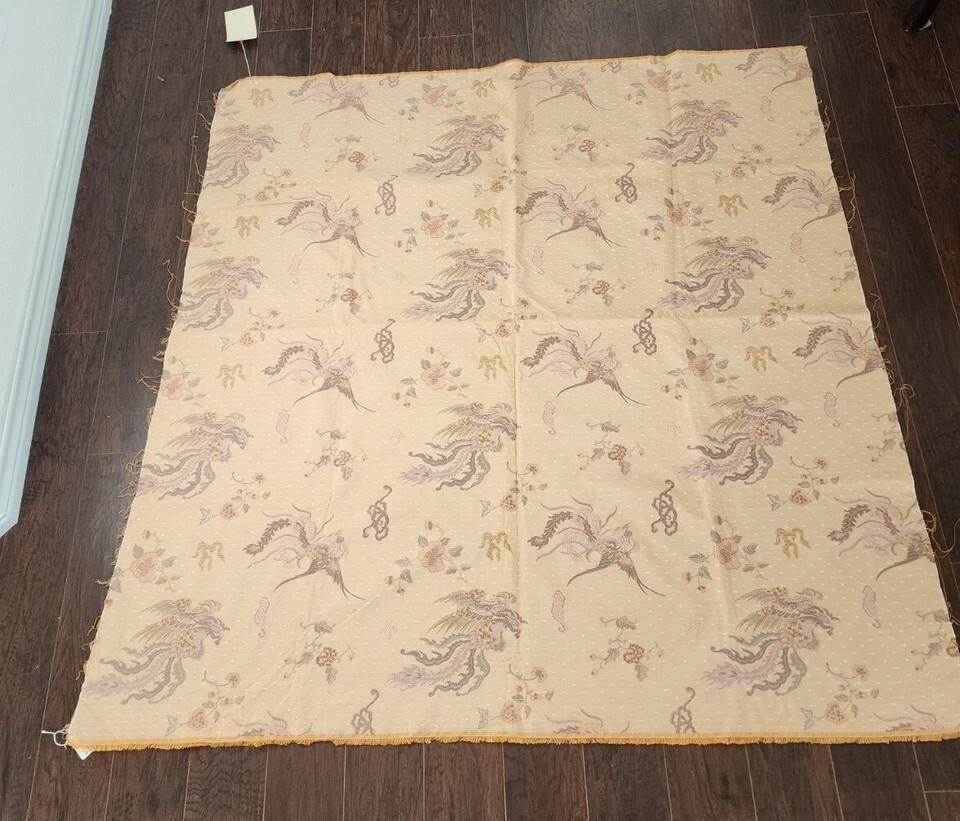 Antique French(?) Peach Brocade Upholstery Fabric Phenix Fird 54" X54"
