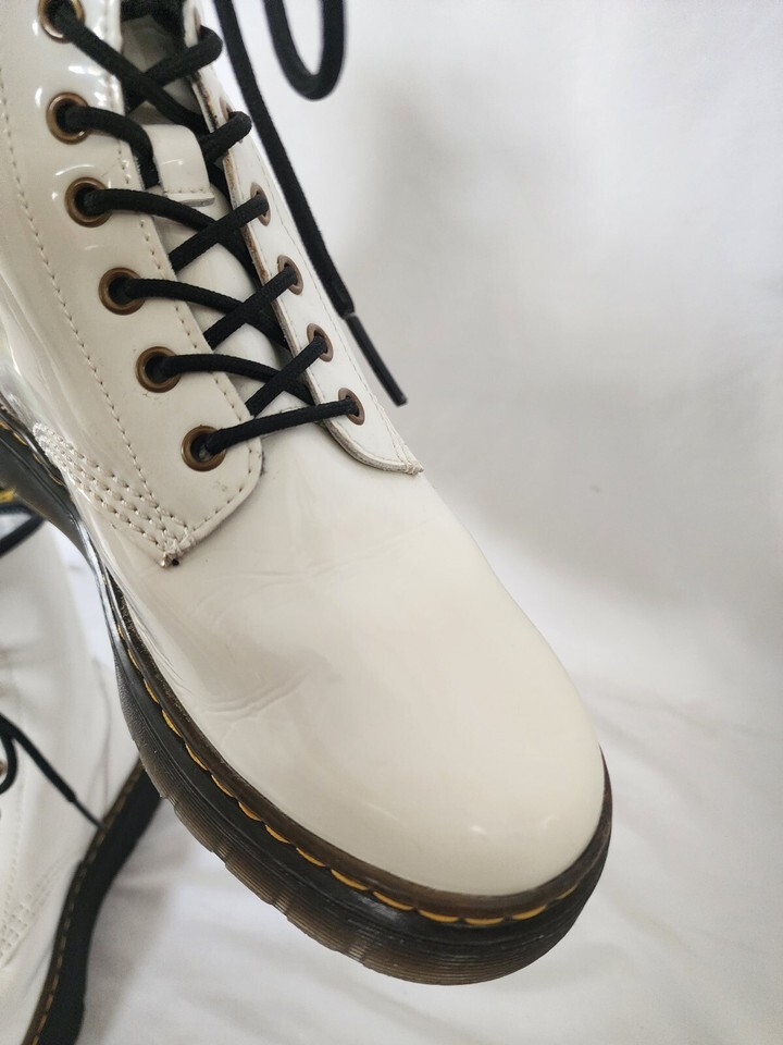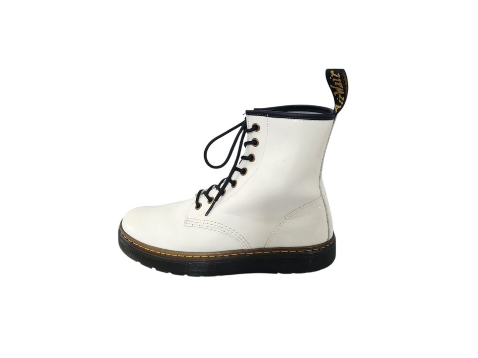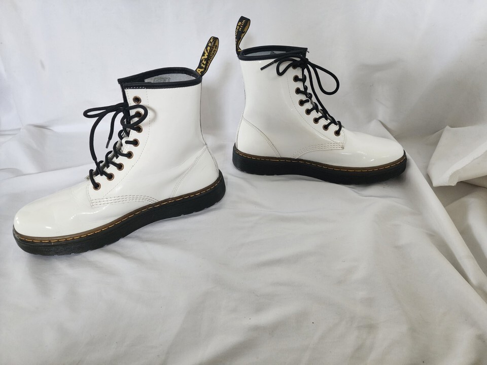 Dr Martens Zavala White Combat Boots Womens 9 Leather Lace Up 8 Eye Ankle Punk