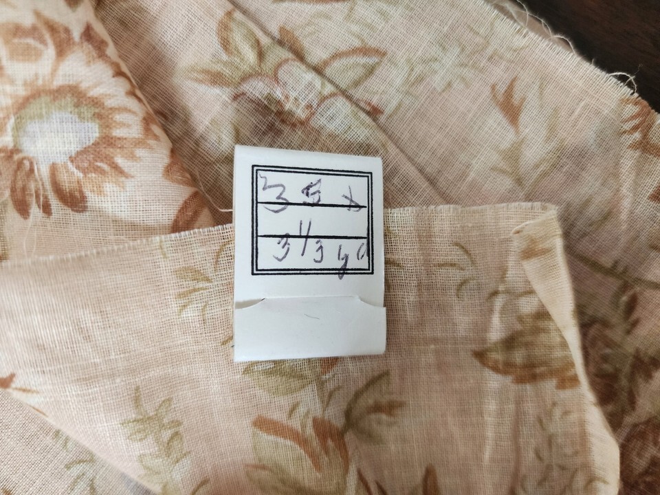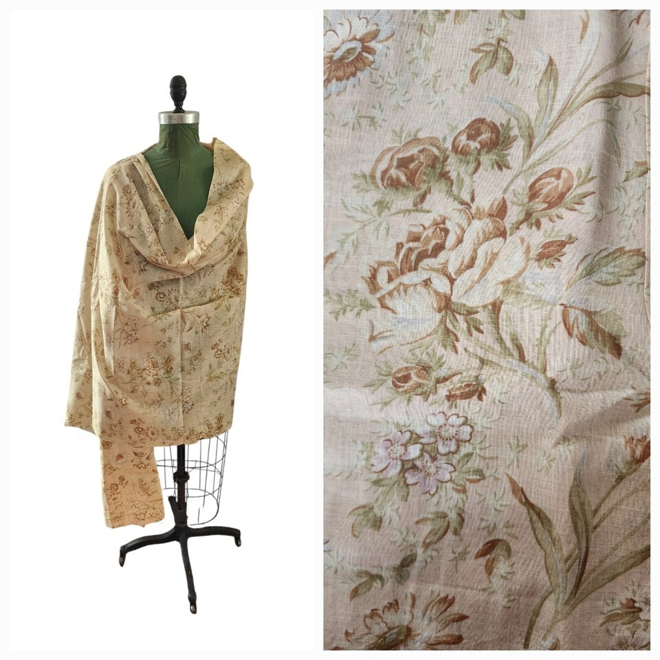 Antique 1920-30s Floral Beige Gold Sheer Fabric For Dress Making 3 1/3 Yards New