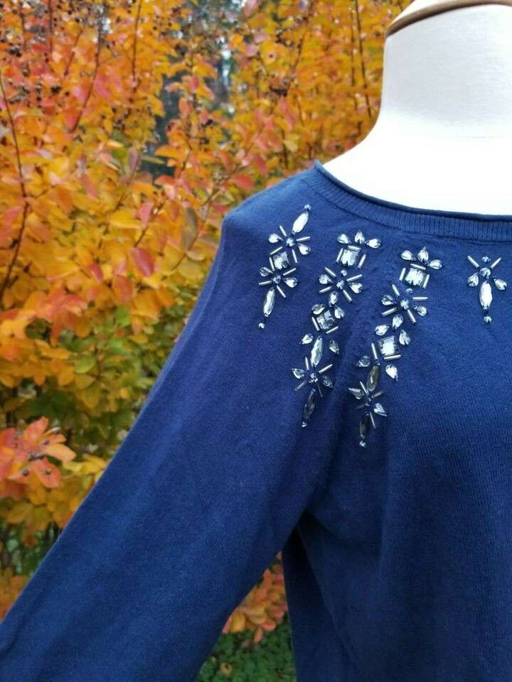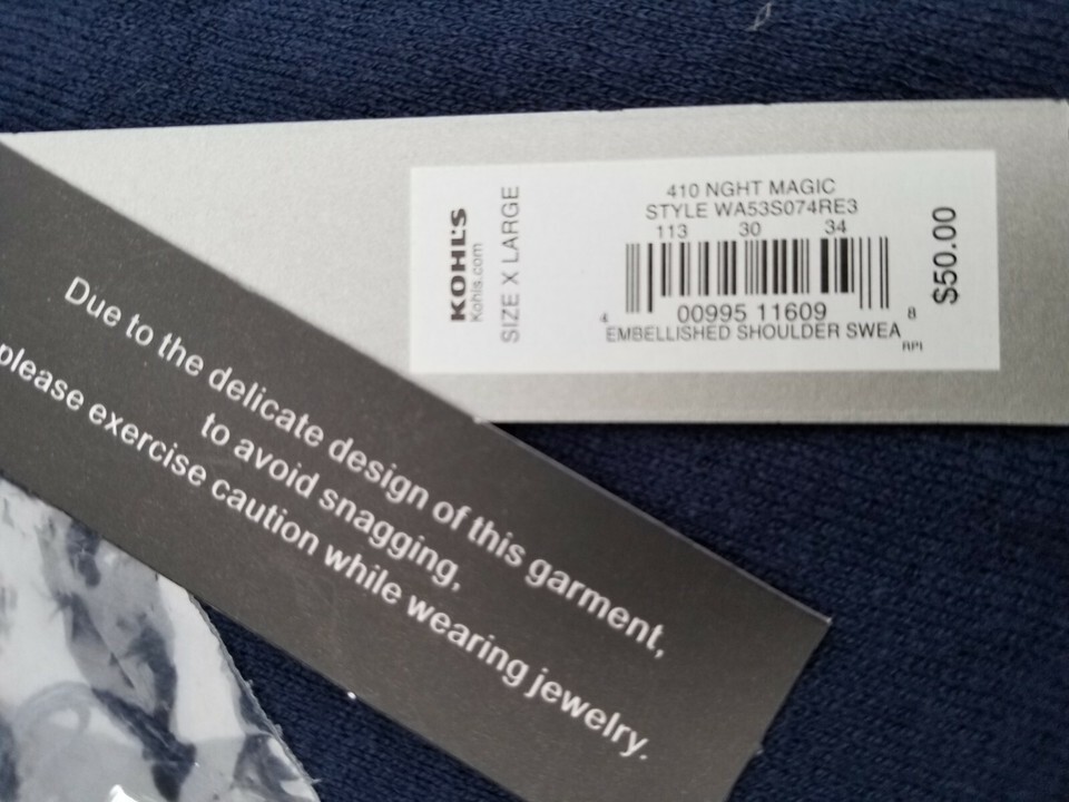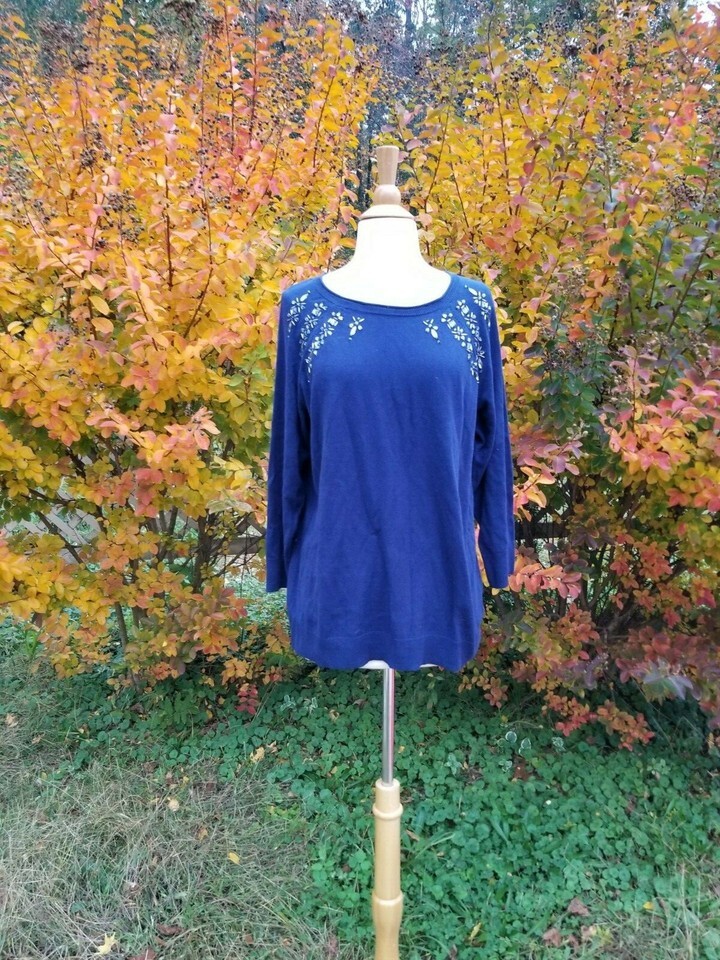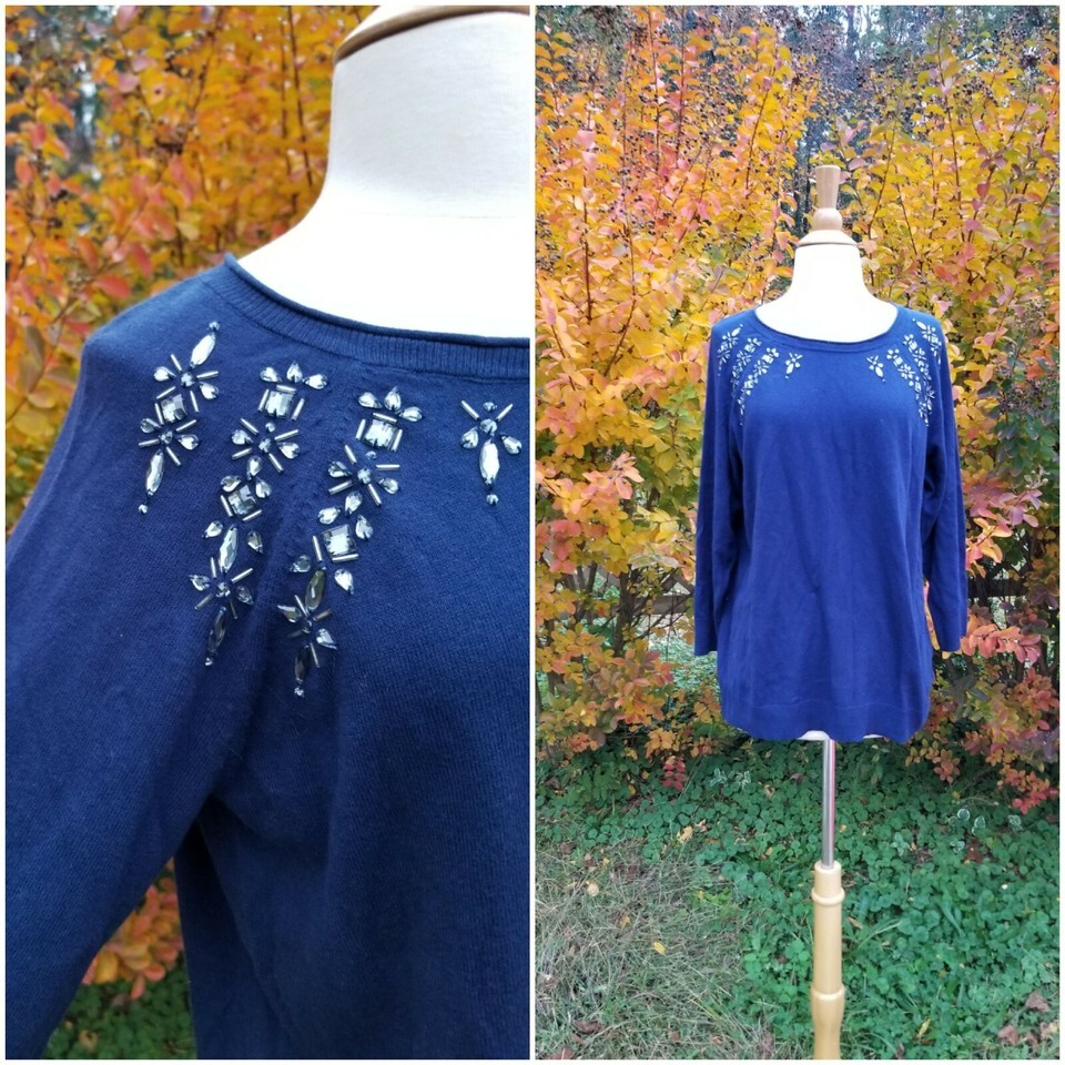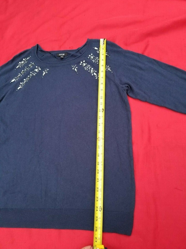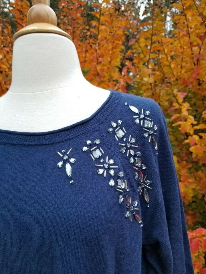 Apt.9 women navy blue embelished shoulder sweater size XL new
