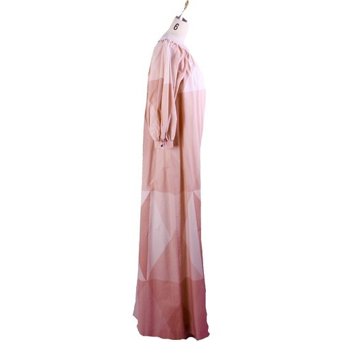 RARE VTG 1970s Marimekko Maxi Dress Flesh Pink Geometric Cotton Puff Sleeve S