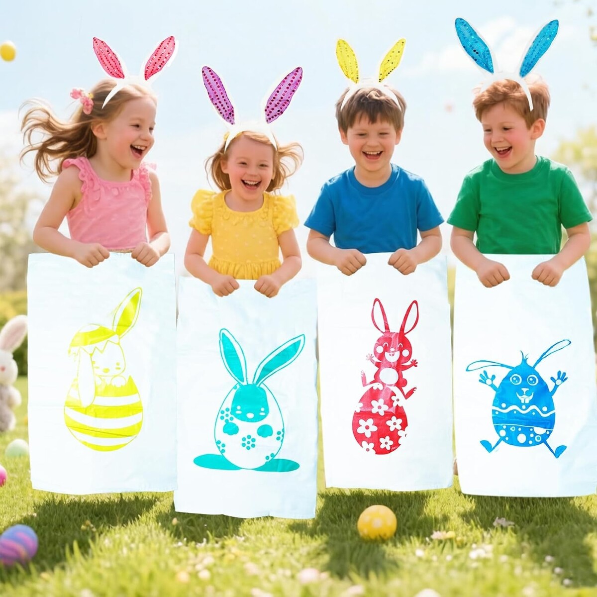4 pcs Easter bunny-themed potato race jumping bags