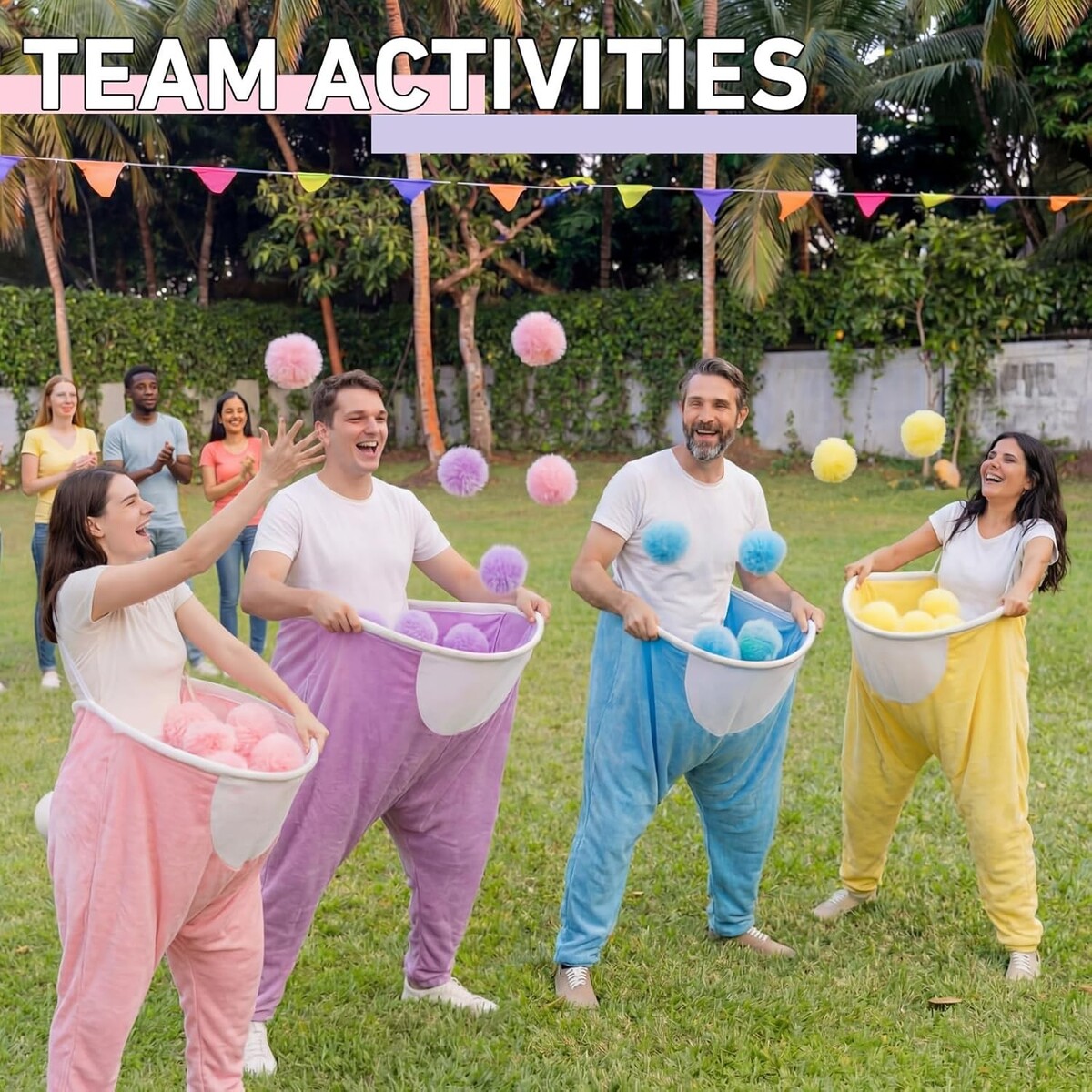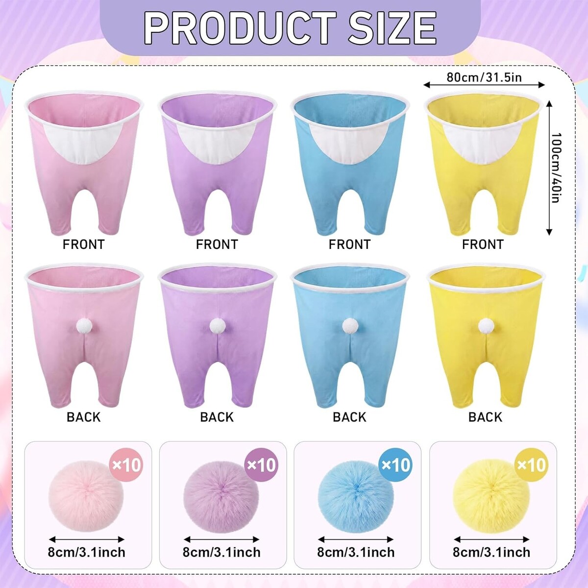 Comes with 40 matching pom-pom balls, ideal for large groups at Easter parties, family reunions, and spring team-building events.