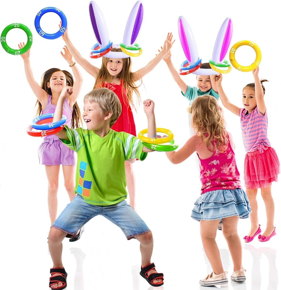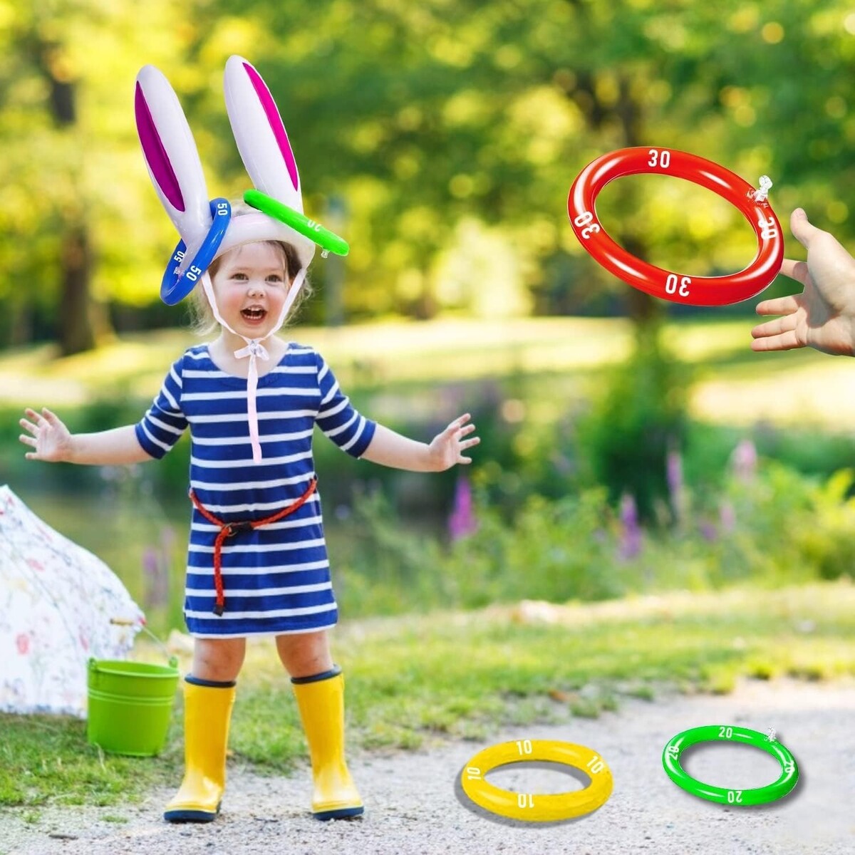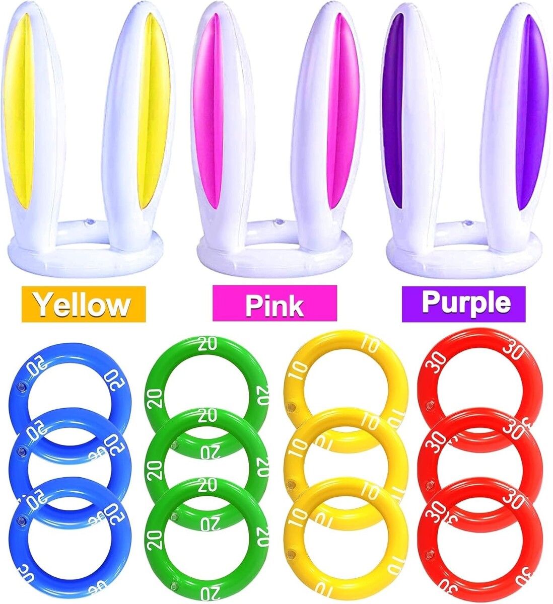3 Pack Inflatable Easter Bunny Ring Toss Game - Family Fun with 12 Rings