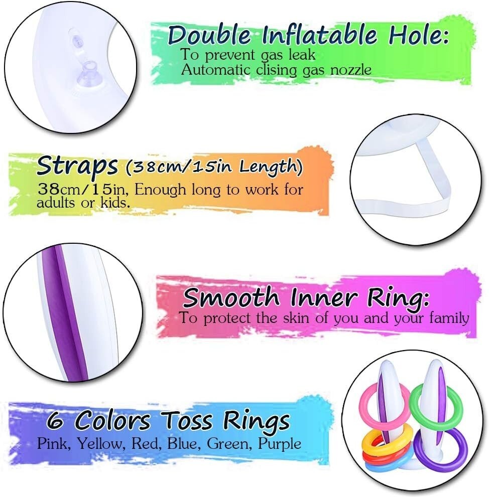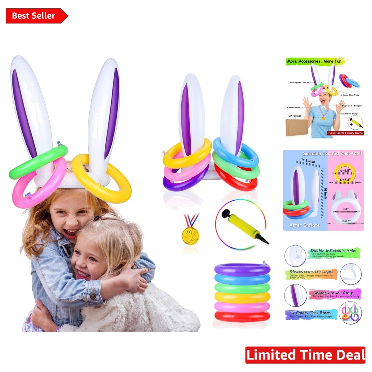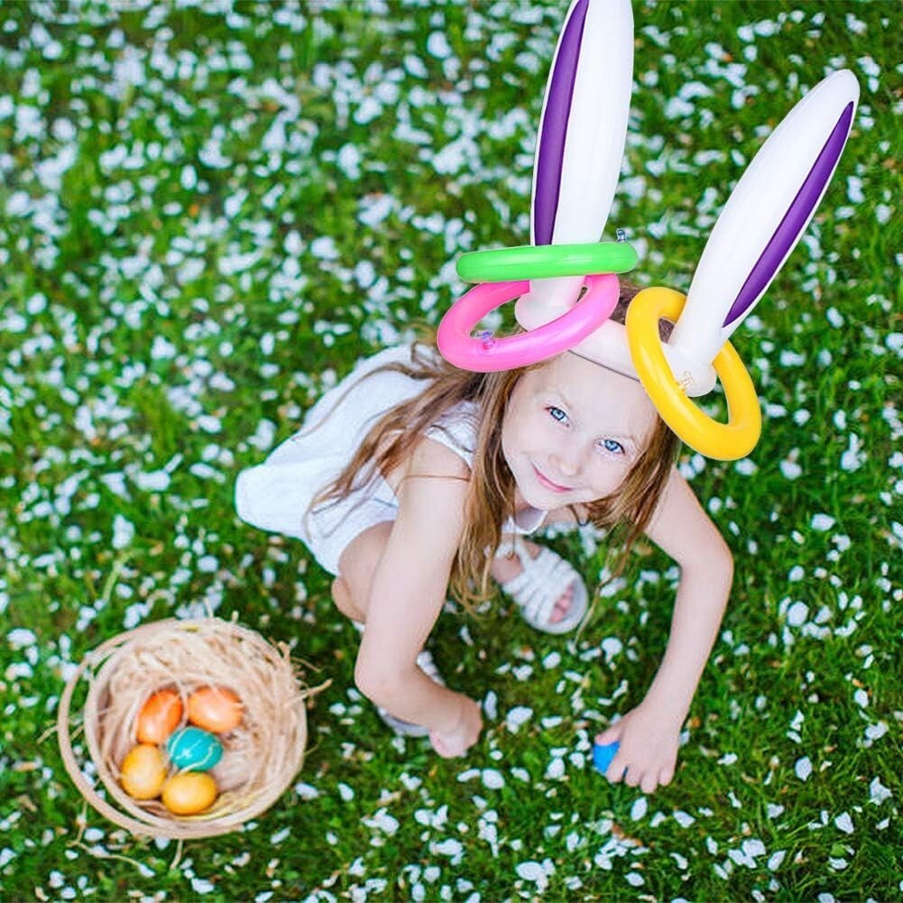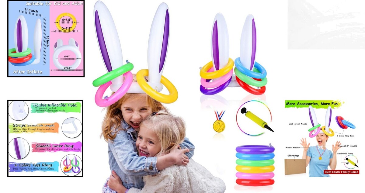 2 Sets in 1 Package: Includes 2 Bunny Ears Hats, 12 Inflatable Rings in 6 vibrant colors, 1 Hand-held pump, and a Gold Medal. Perfect for 2-8 players!