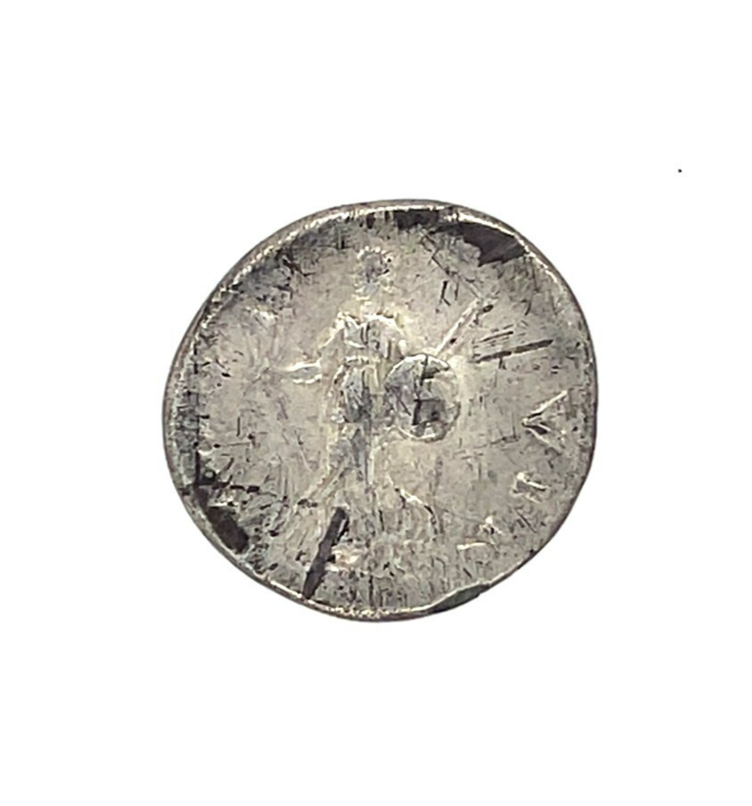 Reverso: Minerva de pie a izquierda, sosteniendo una lanza y un escudo redondo.