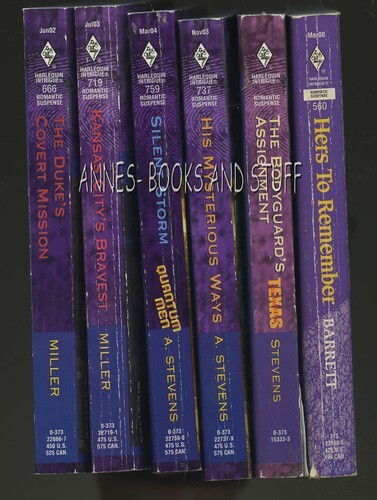 LOT of SIX paperback books Harlequin INTRIGUE * Miller (2), Stevens (3) Barrett