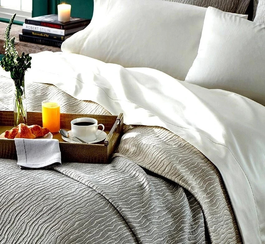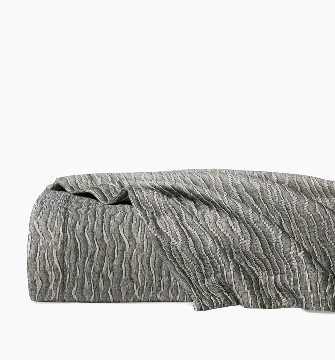 Inspired by landscapes of rolling sand dunes, Ondate is rendered in a two-toned yarn-dye weave that reminisces undulating wavelets. Textural and smooth, the reversible coverlet has a subtle and soft palette in an arresting statement of exquisite artistry