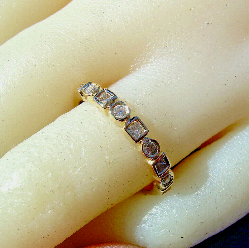 EARTH MINED DIAMOND Deco Wedding Band ORIGINAL SOLID 14K GOLD Anniversary Ring 7