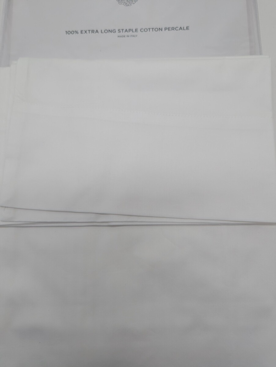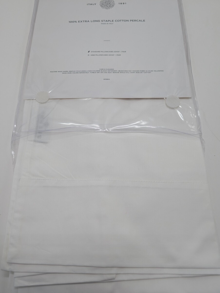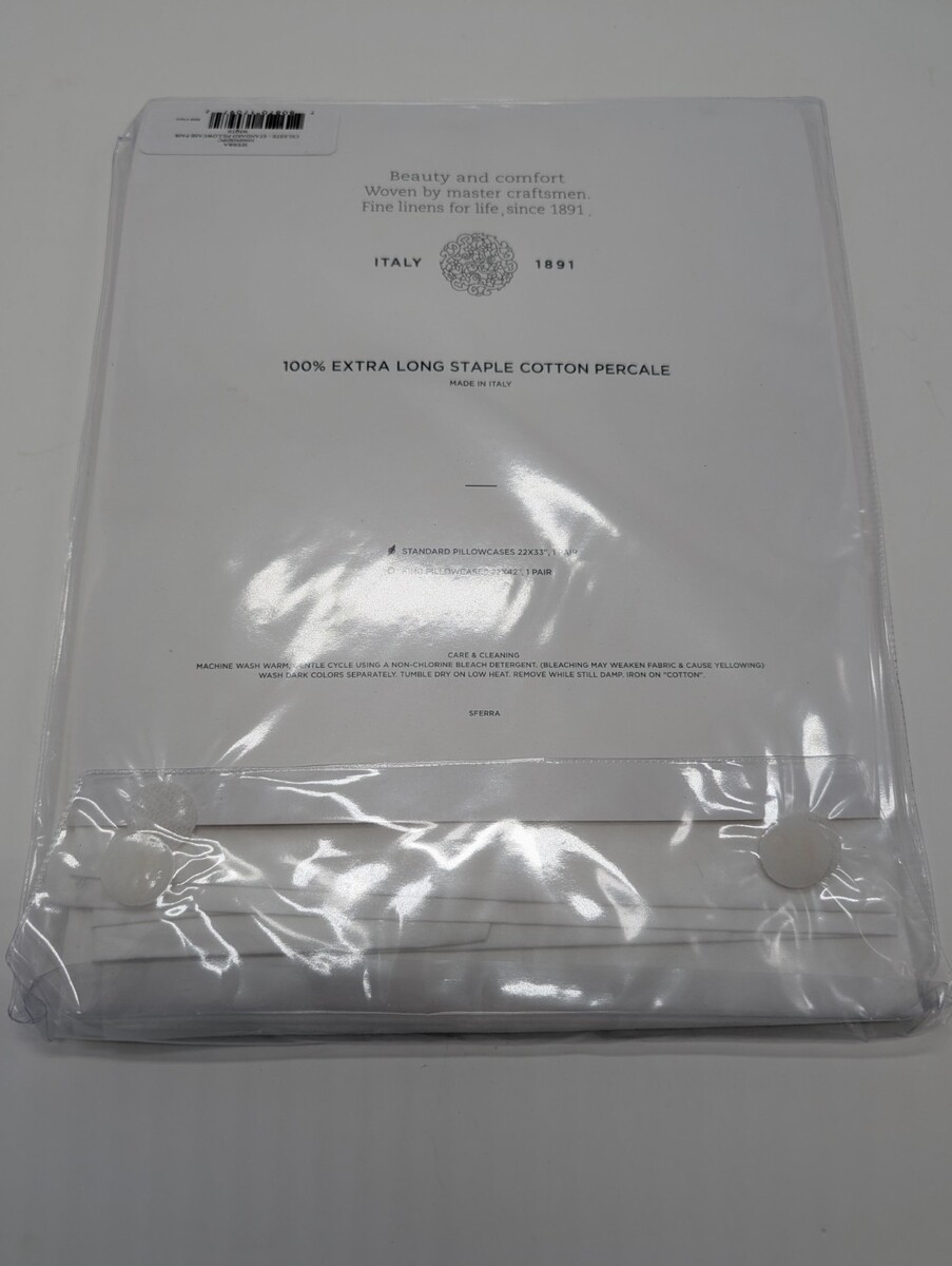 Sferra Corto Celeste White Standard Pillowcases Cotton Percale 406TC Italy NEW
