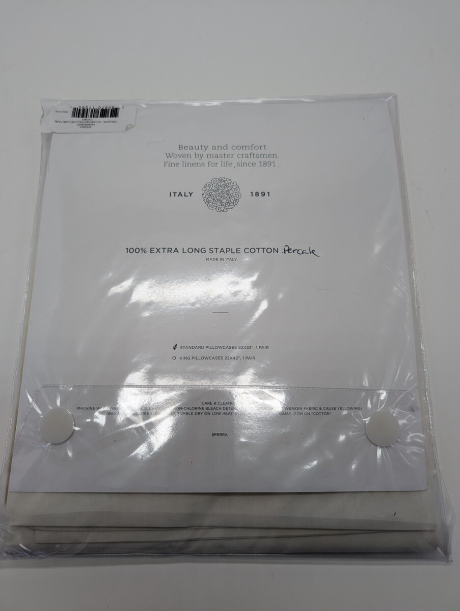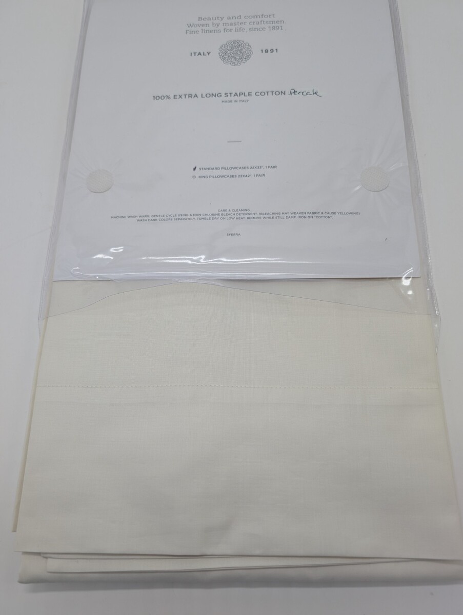 Sferra Corto Celeste Ivory Standard Pillowcases 2 Cotton Percale 406TC Italy NEW