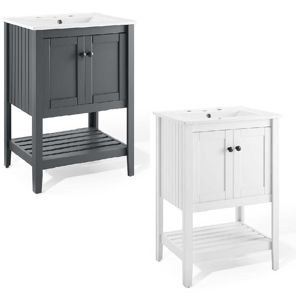 Modern 24" Bathroom Sink Vanity Gray or White Slat Design Cottage Style