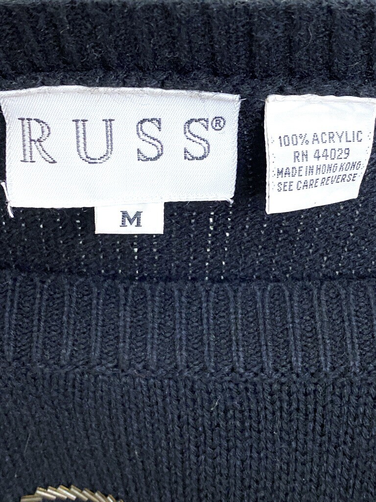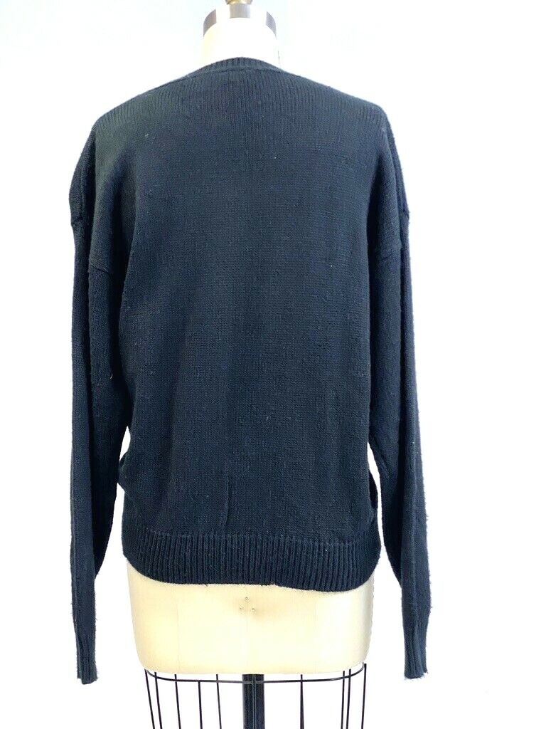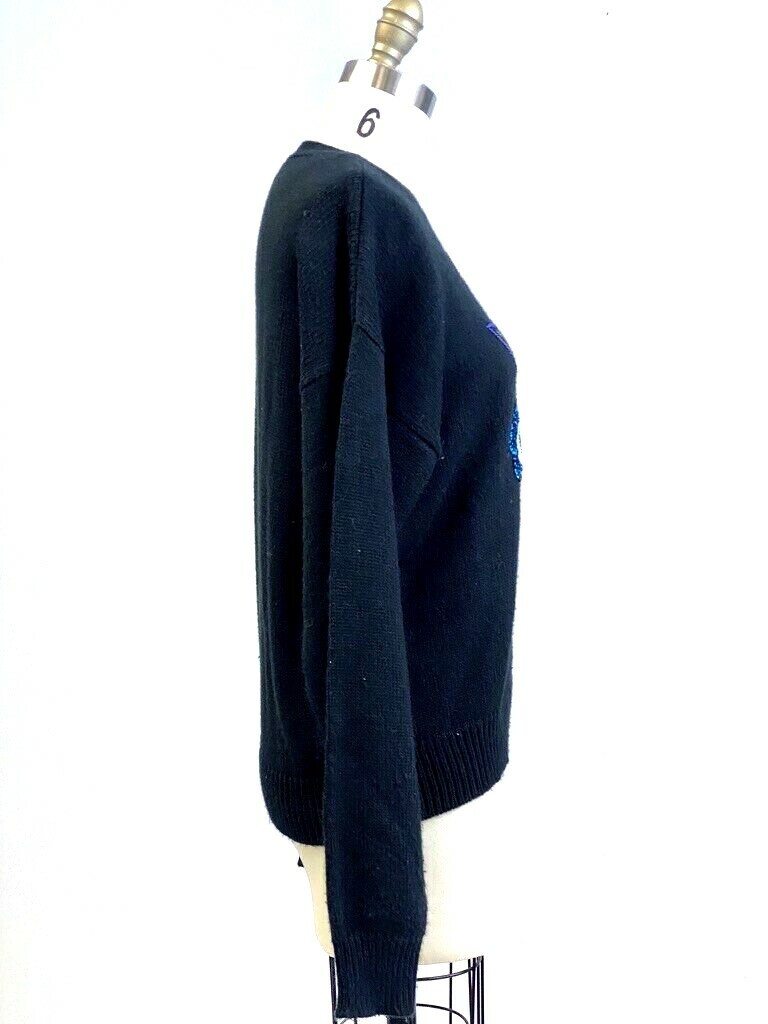 VTG 80s RUSS Black Sequin Floral Sweater Womens M Acrylic Party Goldbergs Look