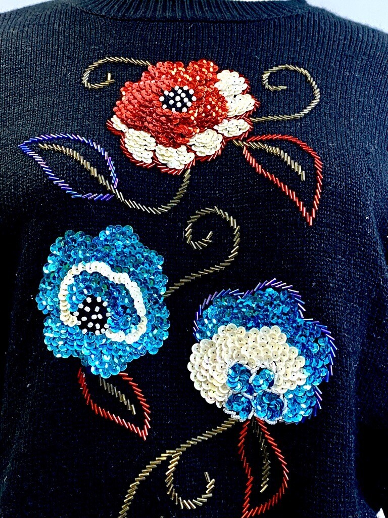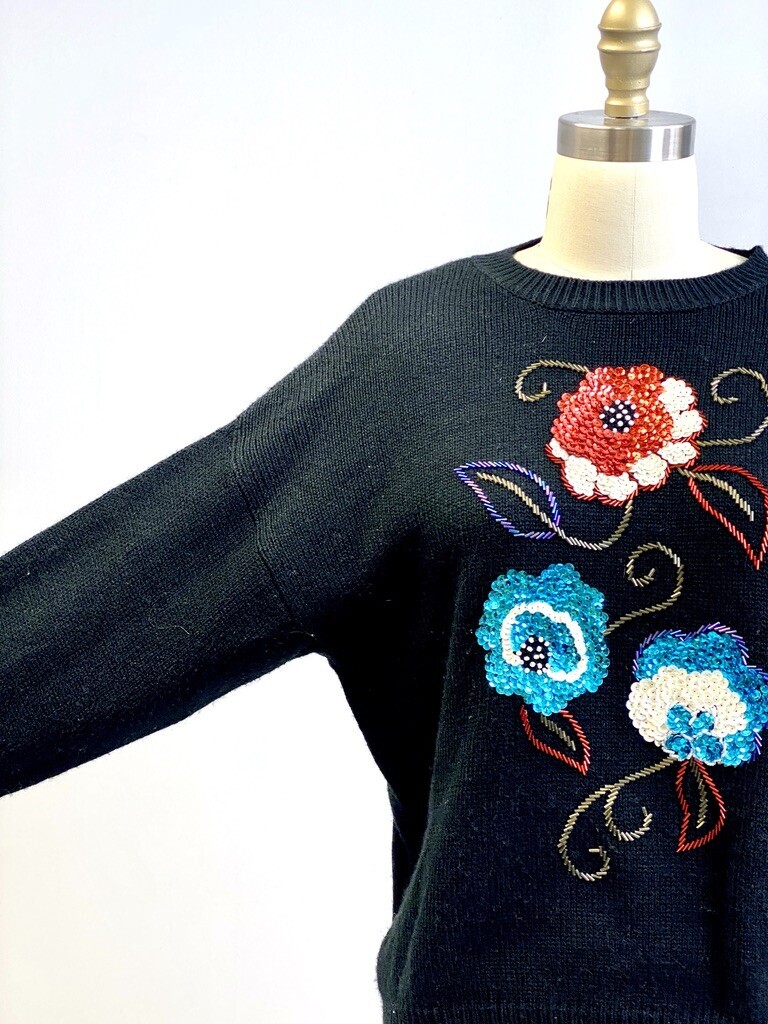 VTG 80s RUSS Black Sequin Floral Sweater and 48 similar items