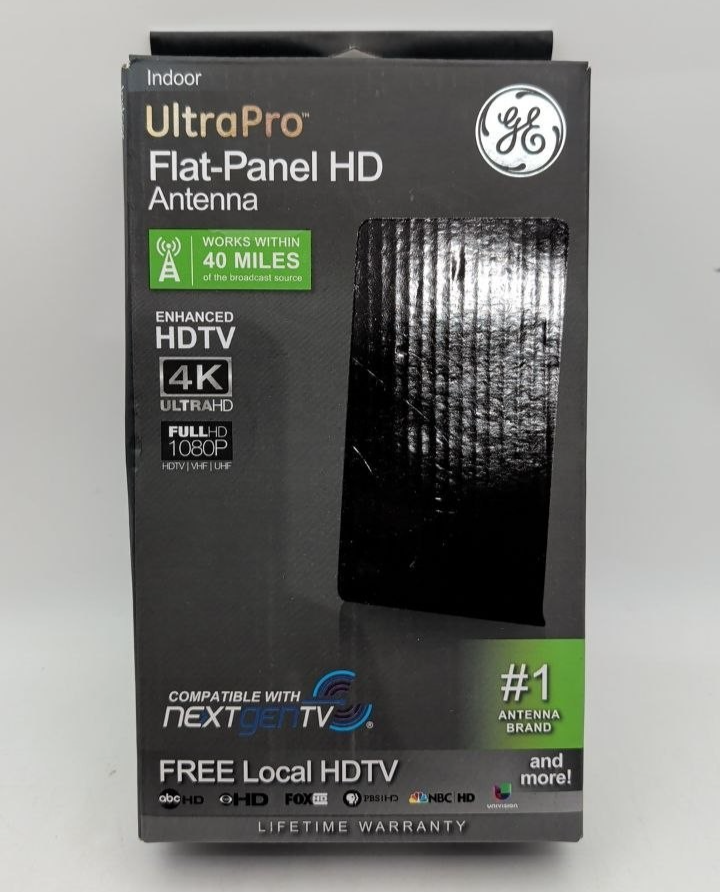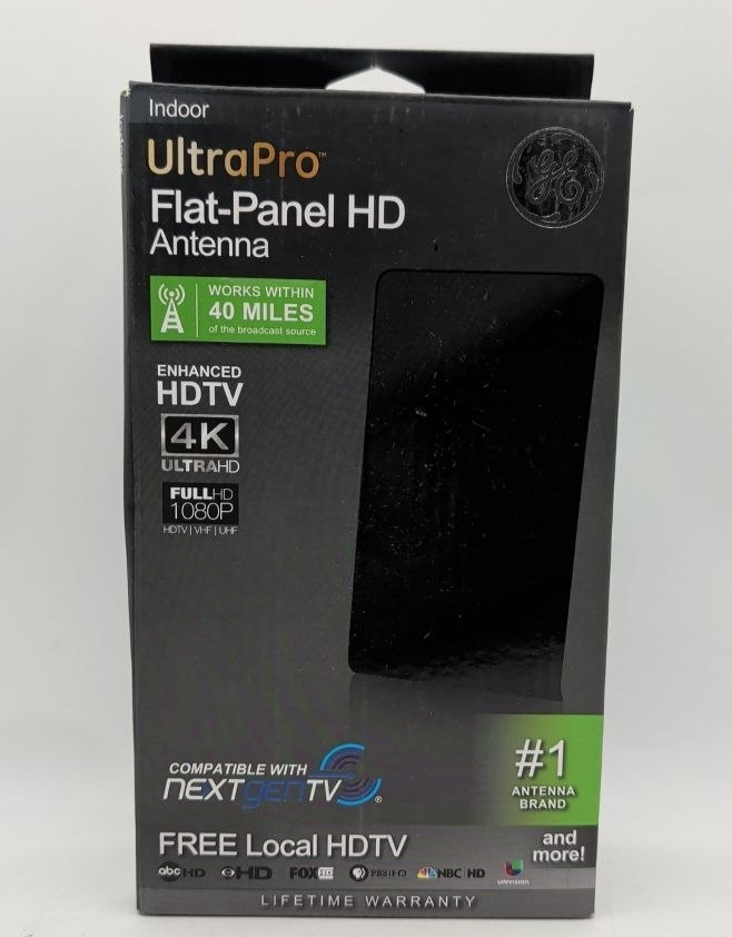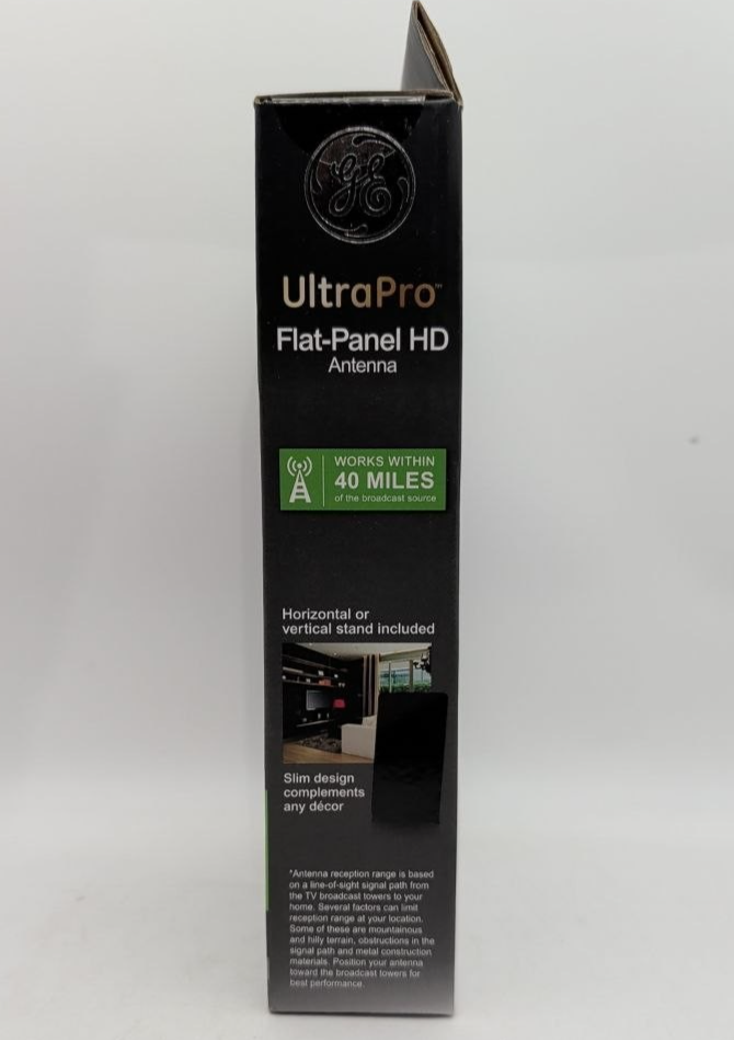 GE UltraPro Flat Panel UltraHD Indoor Antenna 40 Mile Range 4K 1080P VHF UHF