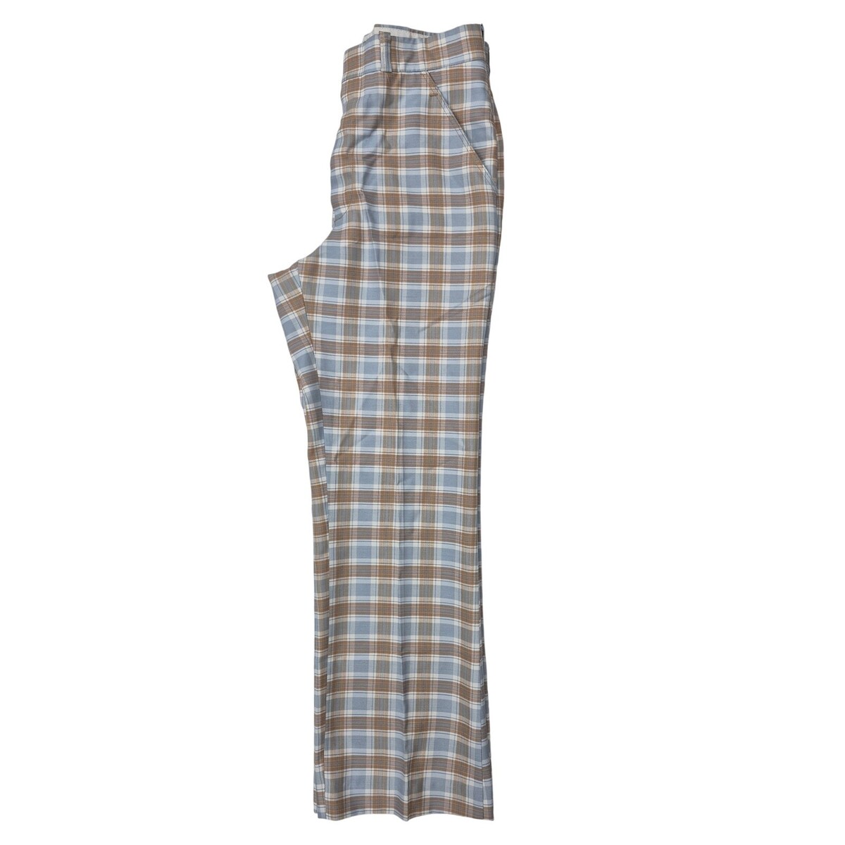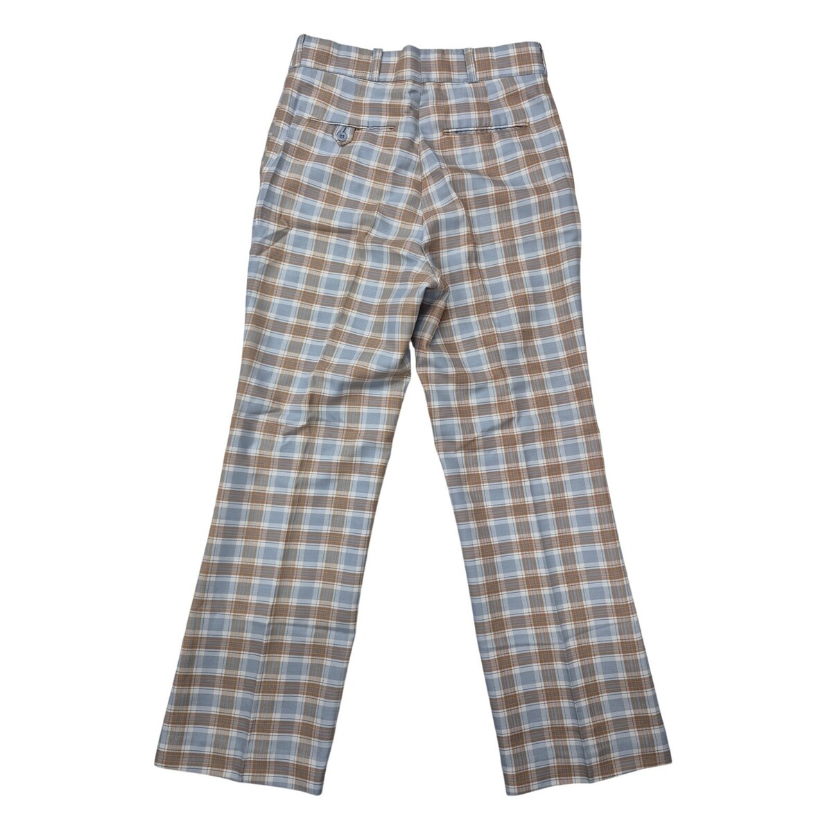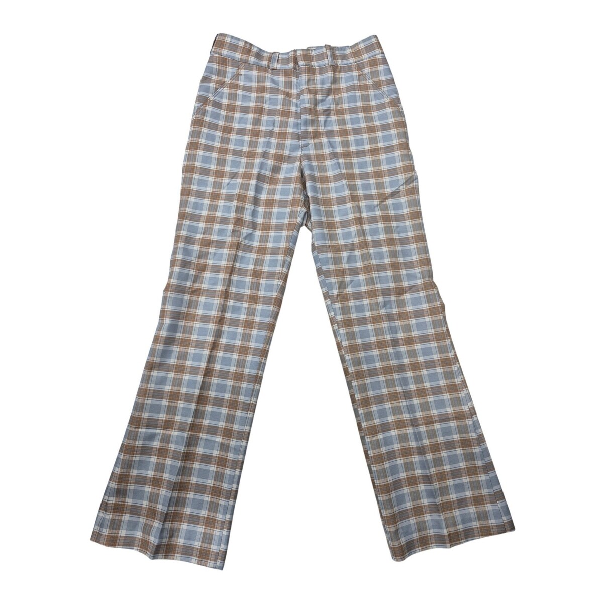 VTG 1970s Wright Plaid Slacks Disco Flare Blue Brown Mod Tailored Pants 30x29