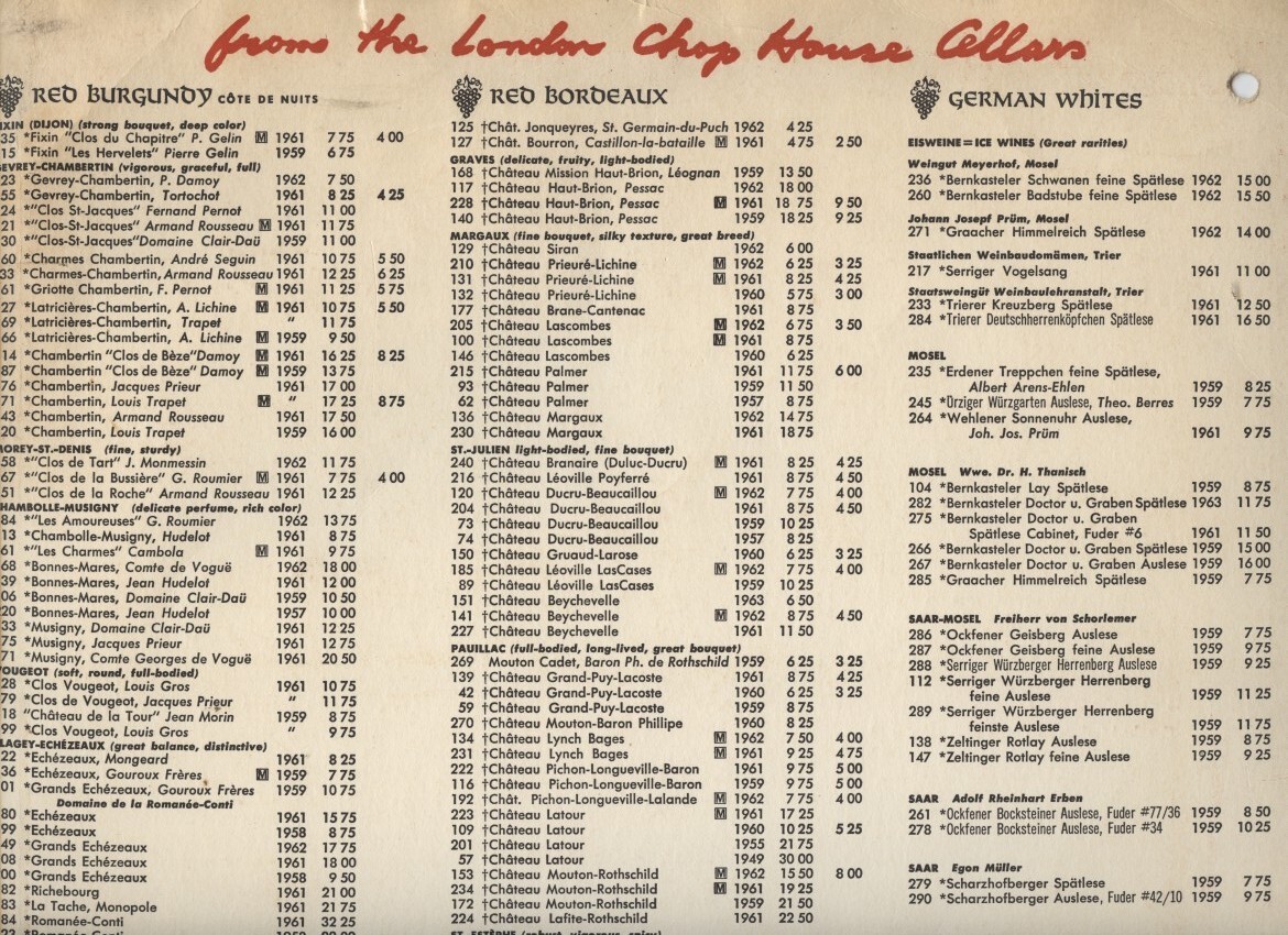 London Chop House Dinner Menu & Wine List and 50 similar items