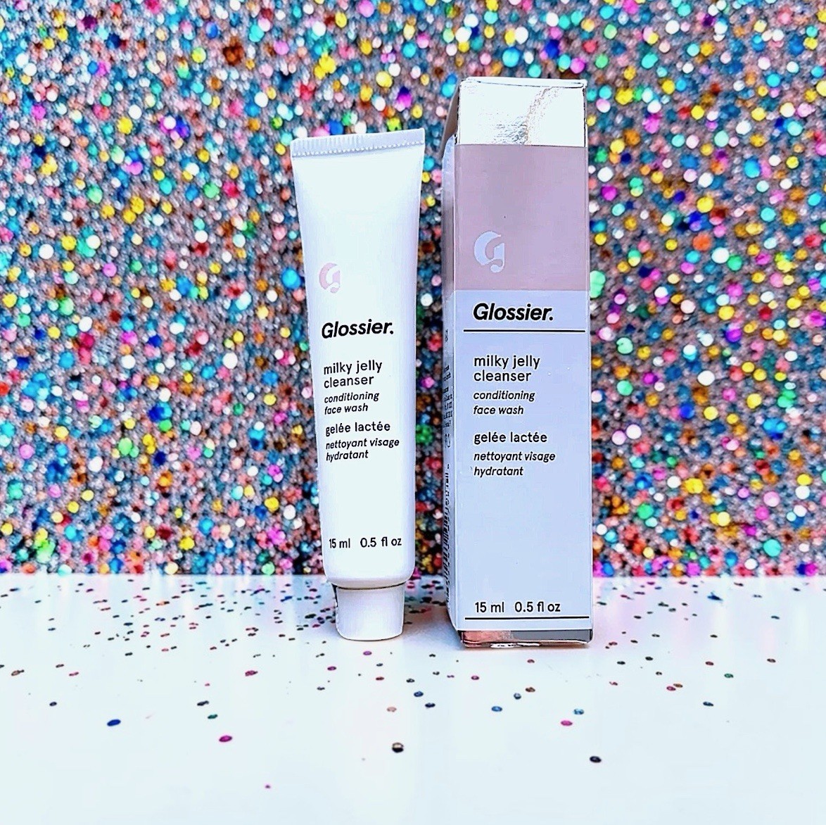 Glossier Milk Jelly Cleanser Travel Size (15ml/0.5 fl oz).