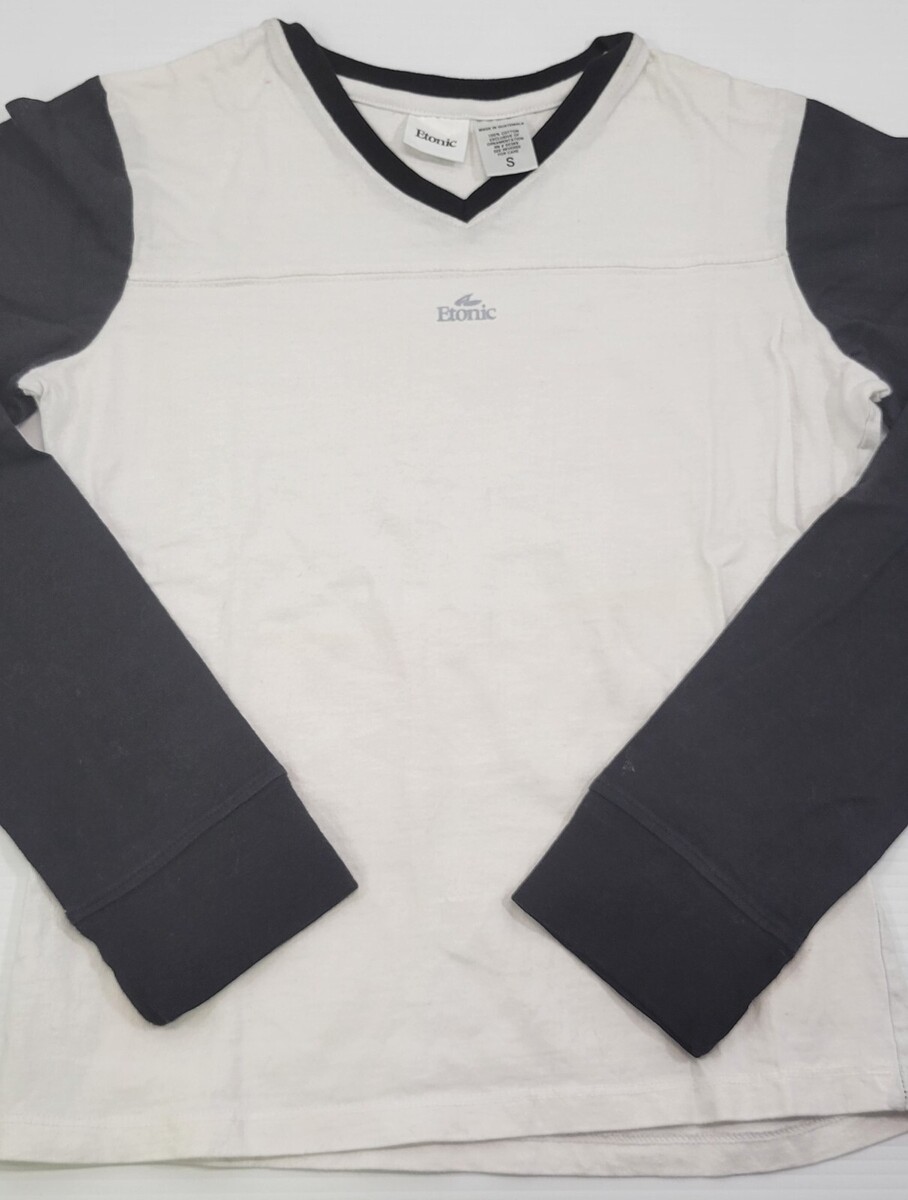 L) Etonic Long Sleeve Cotton T-Shirt Black and White Size Small