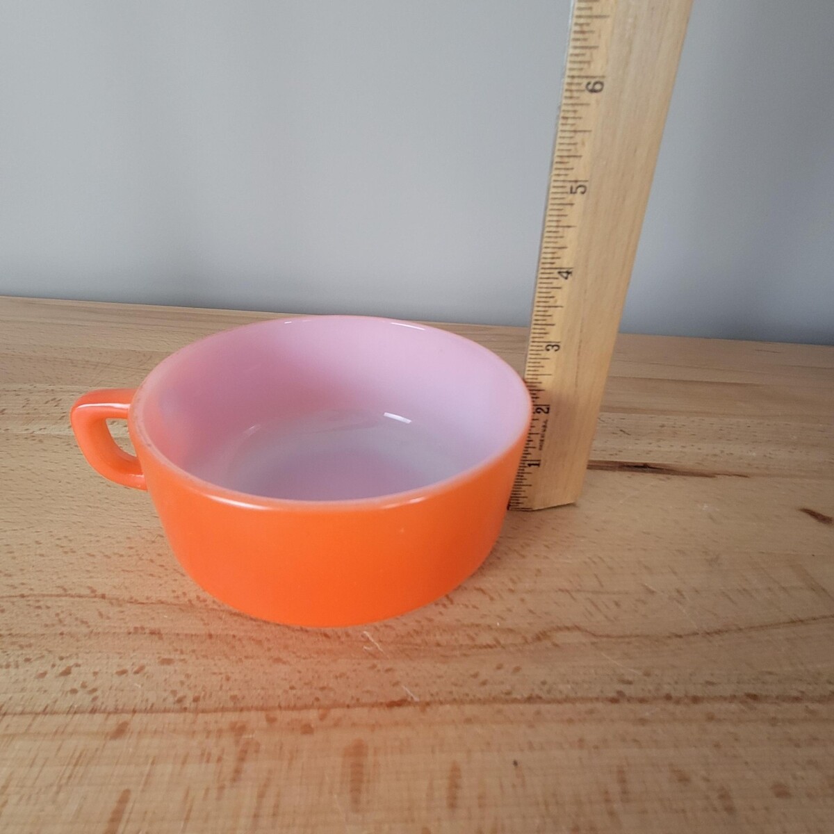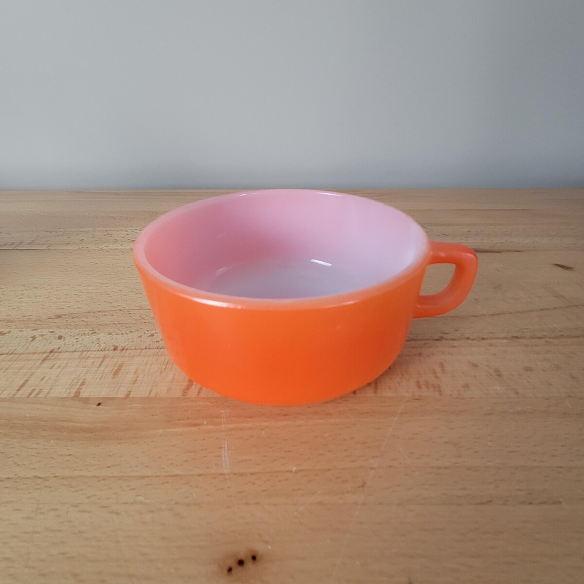 VTG Fire King Anchor Hocking Soup Bowl Mug Cup Orange Milk Glass Oven Proof USA