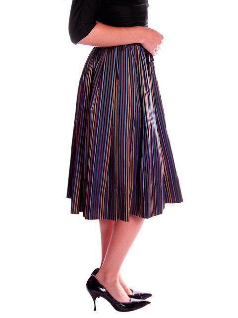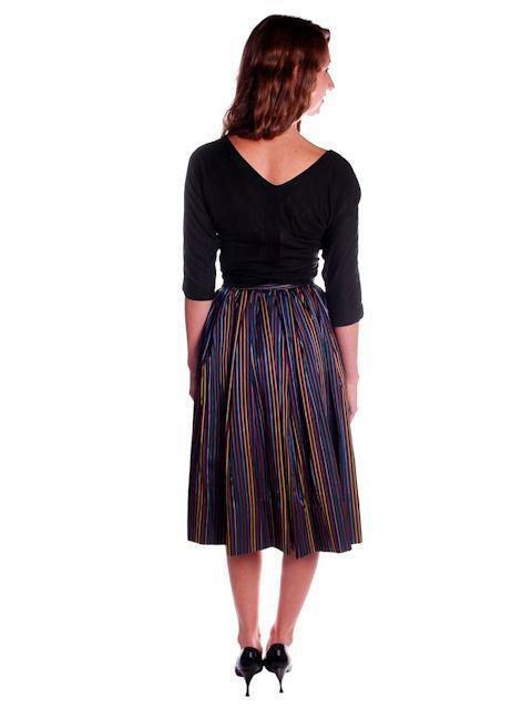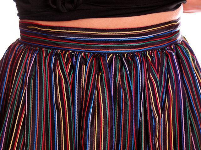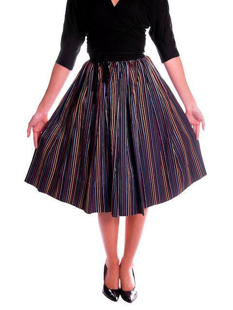 VTG 1940s Black Rayon Taffeta Skirt Bright Primary Stripes XS 22.5" Waist