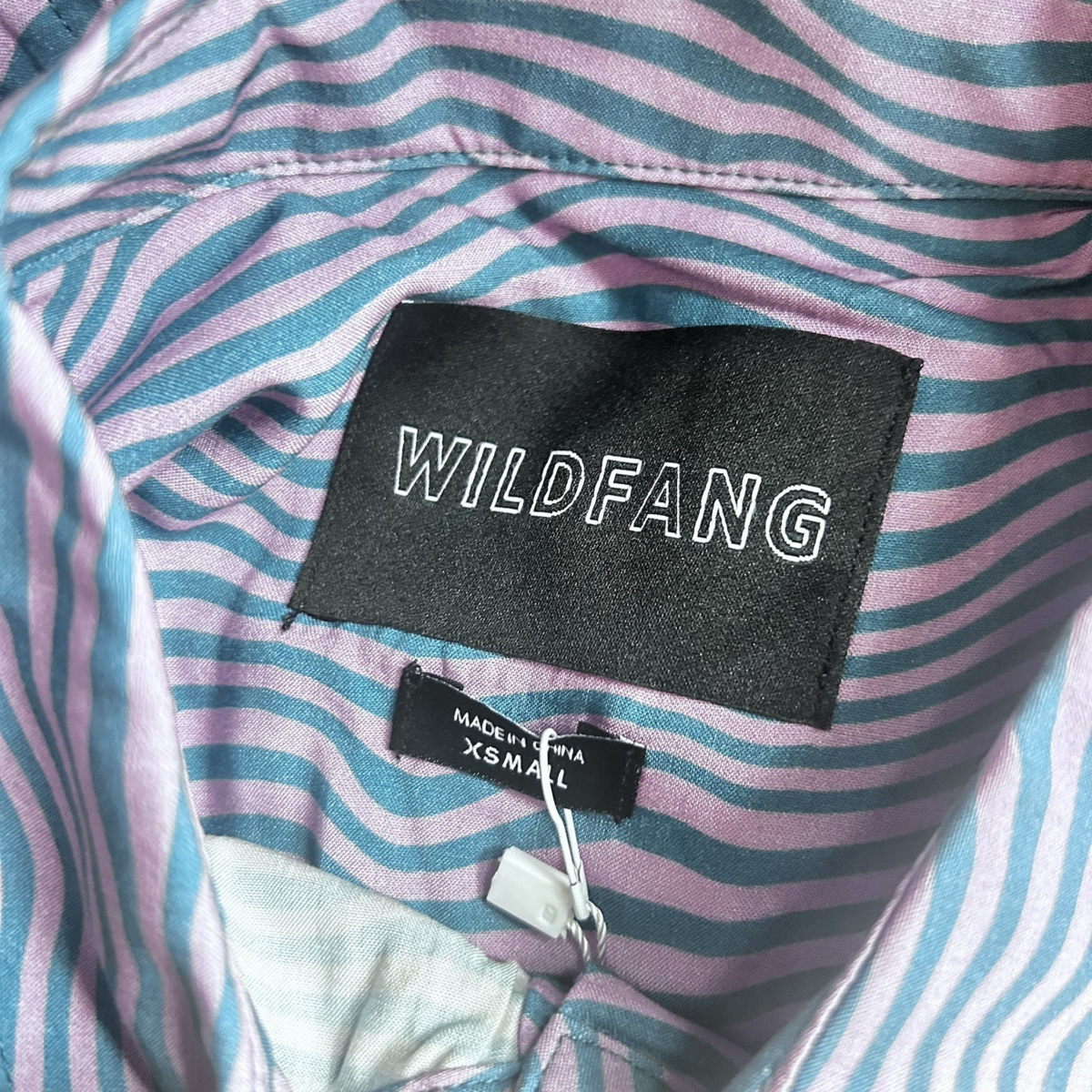 Wildfang The Essential Button Up Short Sleeve Sonic Print Pink Blue X-Small BBB