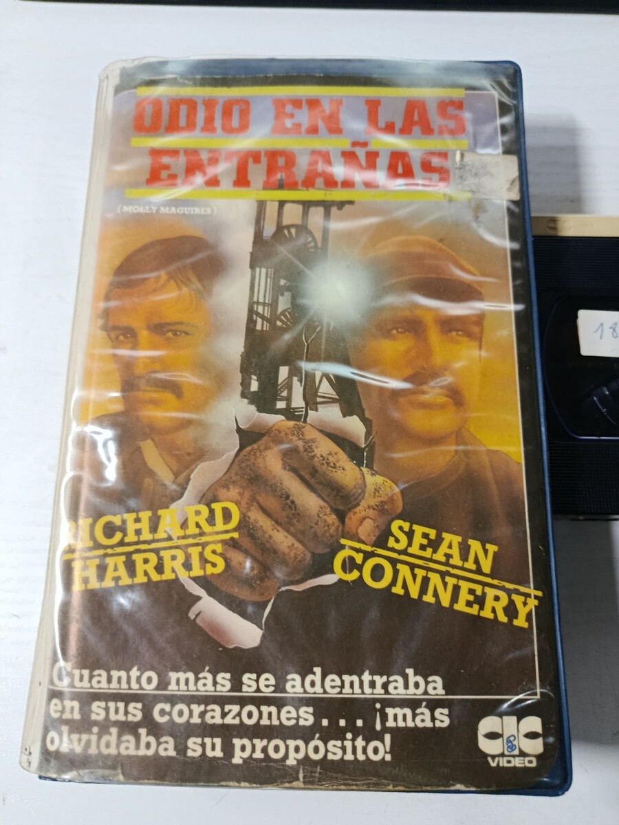 VHS, Hate in my guts, The Molly Maguires, Sean Connery, Richard Harris, Samantha Eggar, Frank Finlay, Martin Ritt, Henry Mancini, PARAMOUNT Pictures, CIC Video, RCA Columbia, historical drama, miners, Ireland, 19th century, social cinema, 80s, big box, vintage video cassette, classic video store, Spanish edition, de film, retro collection, 1985