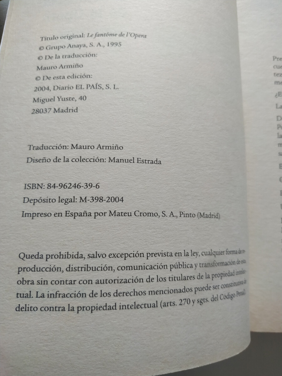 el Phantom de the Opera Gaston Leroux 2004 - BOOK Spanish Am