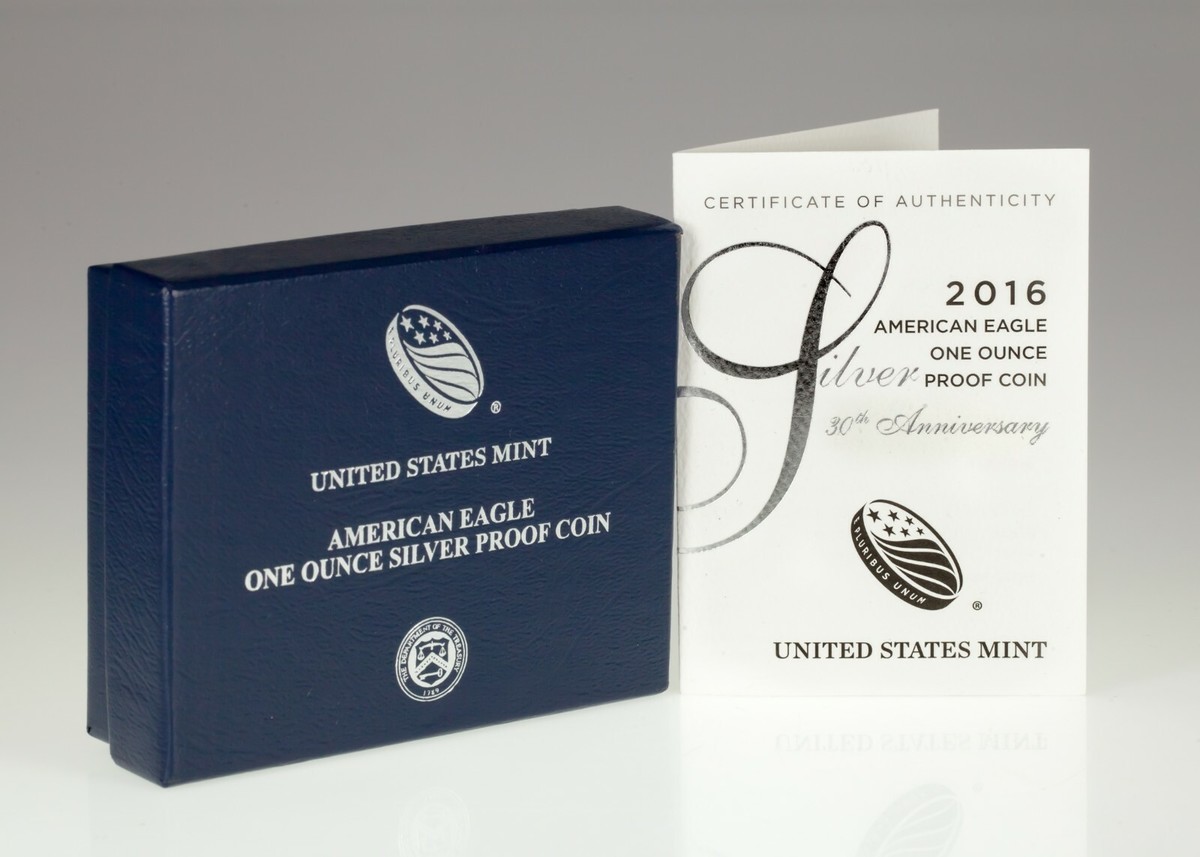 2016-w Silver American Eagle Proof Lettered Edge w/ Box, Case, and CoA