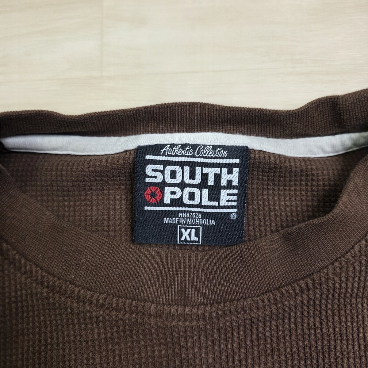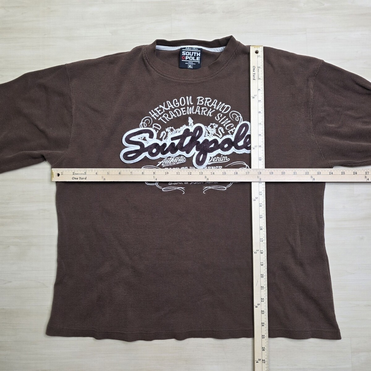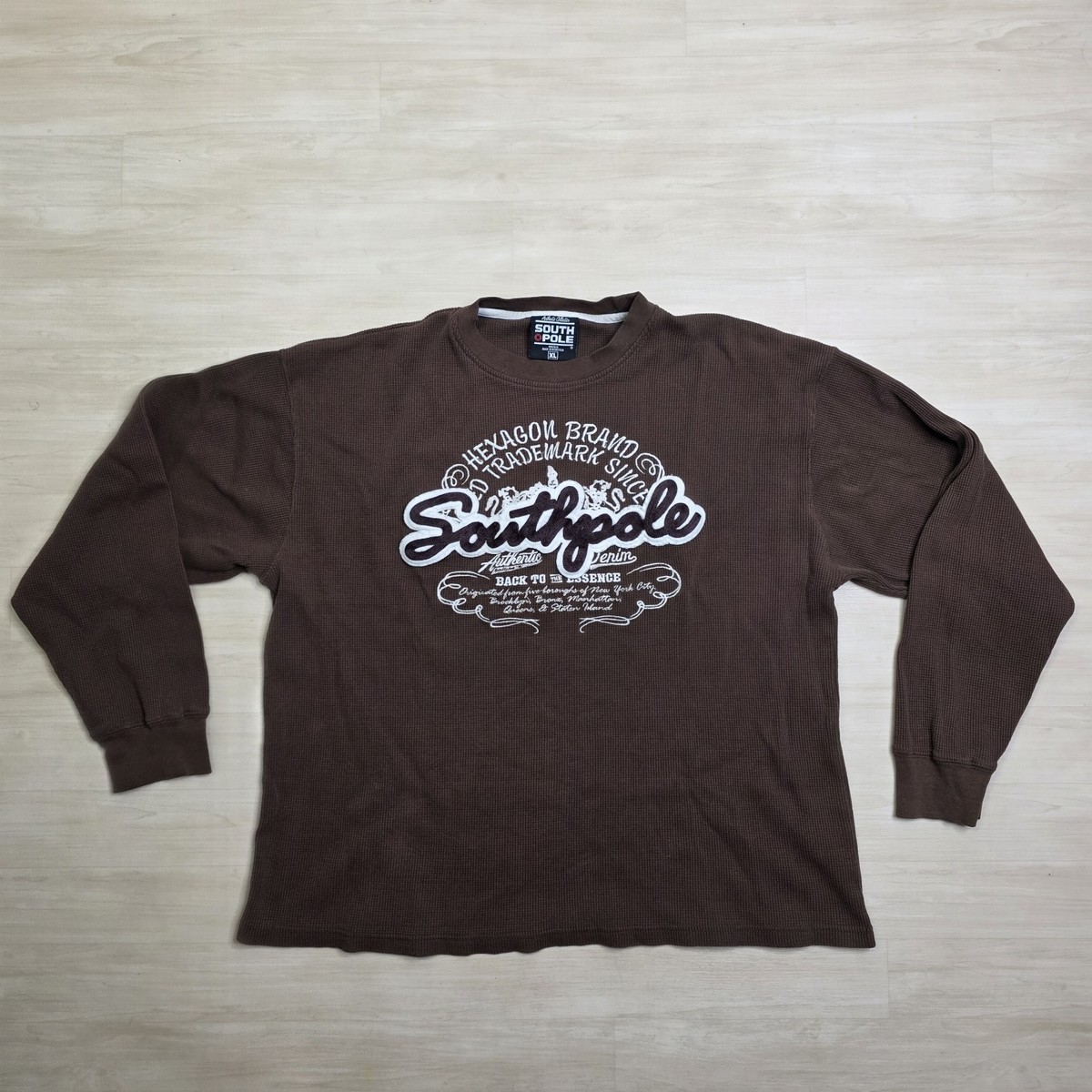Y2k South Pole Brown Long Sleeve Waffle Knit Thermal Spellout Hip Hop Size XL