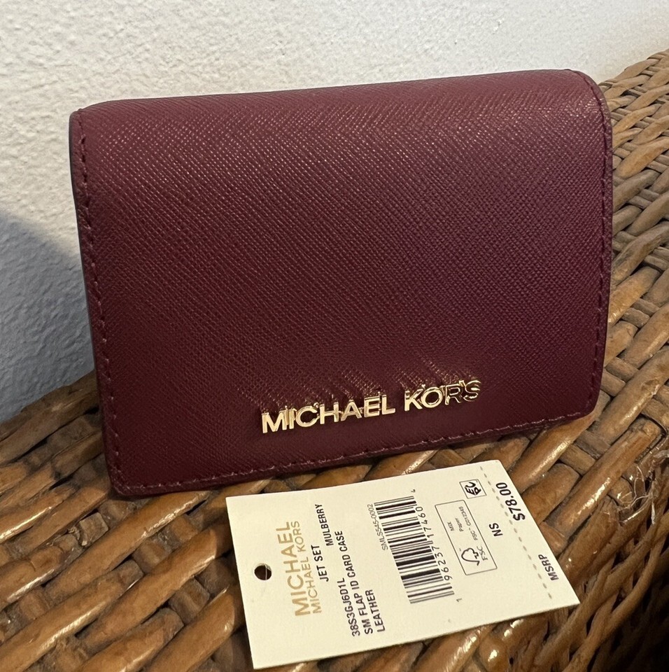 MICHAEL KORS JET SET CARM SM FLAP ID CARD CASE LEATHER mulberry $78.00