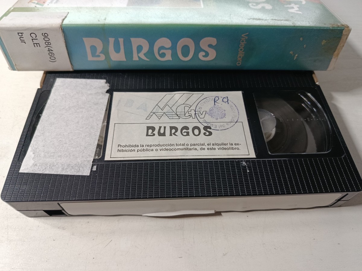 VHS, Burgos, documentaire, Livre video, MC TV, Castilla y Leon, patrimoine, historia de Espagne, art et culture, tourisme, villes espagnoles, cathedralede Burgos, rarete VHS, collection pedagogique, film documentaire, video culturelle, collection retro, format PAL