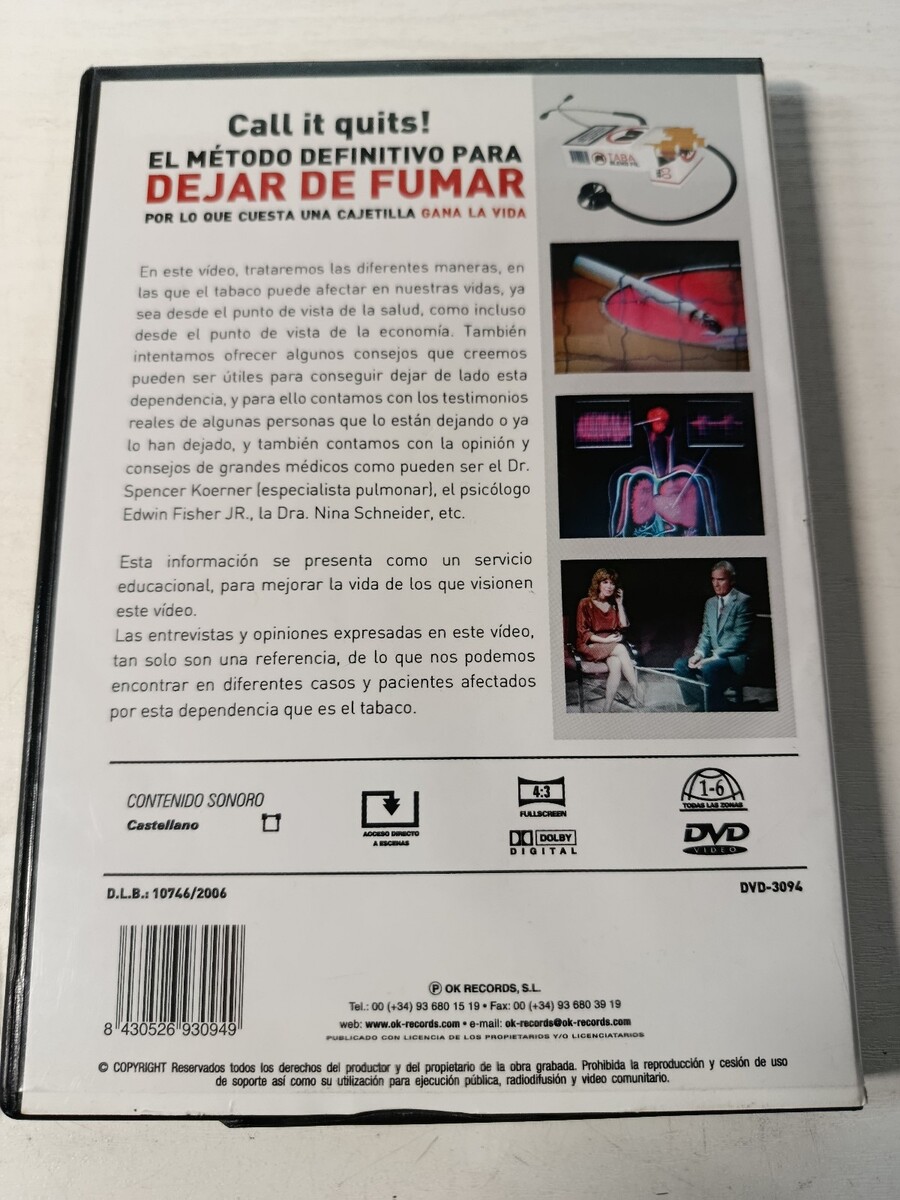 Arreter de , Call It Quits, methode definitive, OK Records, DVD espagnol, region 0, sante, bien-etre, tabagisme, documentaire educatif, Dr Spencer Koerner, Edwin Fisher, motivation, arreter el , prevention, habitudes saines, format physique, developpement personnel