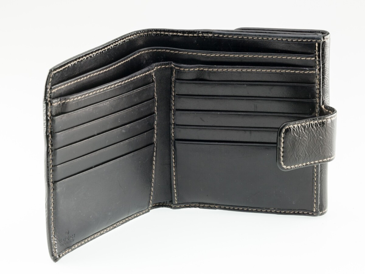 Gucci Black Patent Leather Britt Compact Bifold portefeuille Nice!