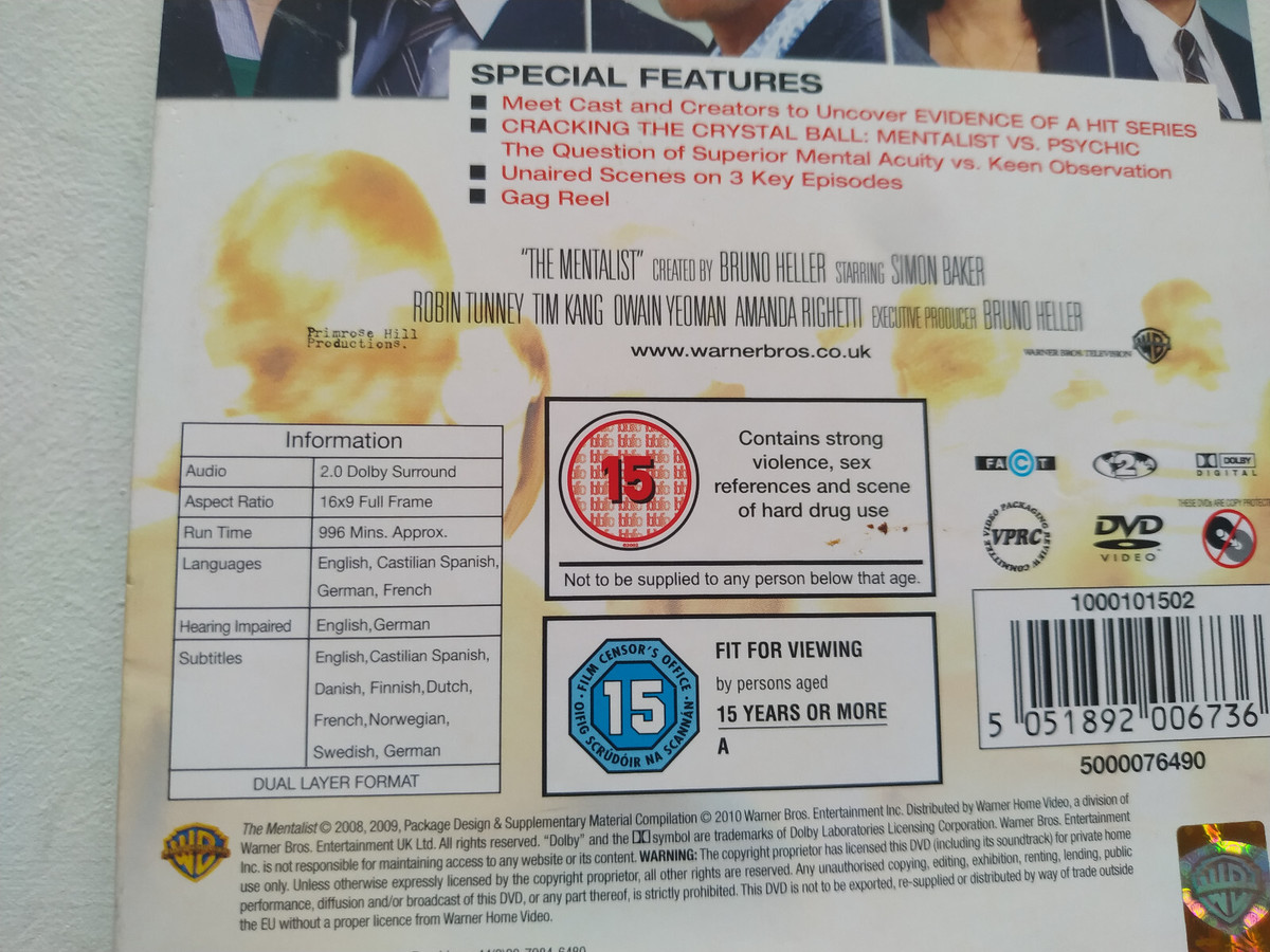 Il Mentalista Prima Stagione - DVD Regione 2 Spagnolo Inglese Mancante Il DVD 6