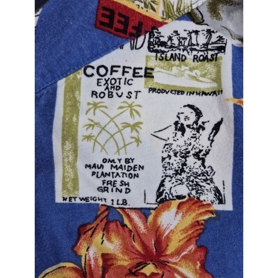 Vintage 90s K.A.D. Clothing Co. Hawaiian Shirt - Coffee Theme Blue Men's 1X