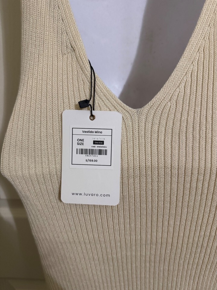 NWT Ribbed Knit Beige Sleeveless 2 sides Slit Long Dress Women's Size S/M Peru