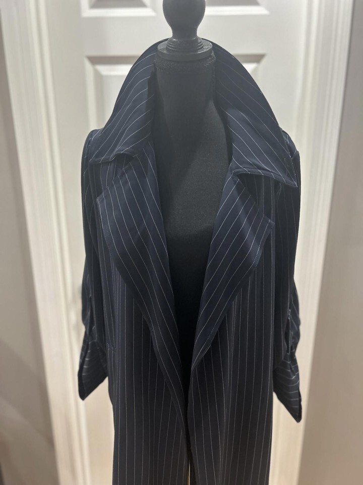 RACHEL ZOE NEW LINA Oversized Pinstripe Open Front Coat Sz L