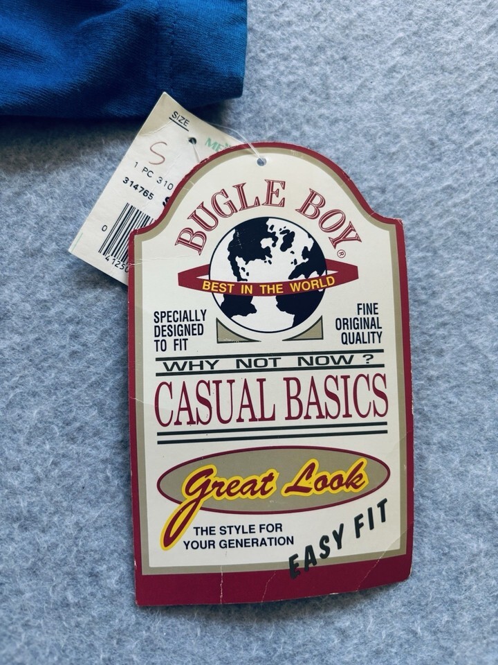 Vintage 90s Y2K Bugle Boy Casual Basics Men’s Small Crew T-Shirt NWT Blue Cotton