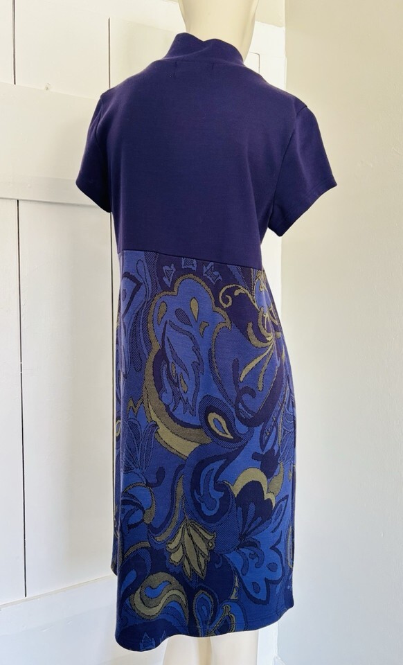 Lemmie for Nina Leonard Dress Purple Stretch Mod Paisley Retro Funky Size Small