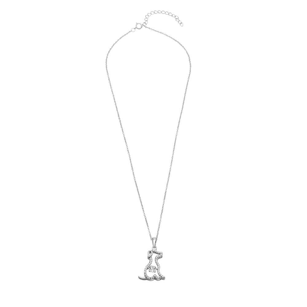 Sterling Silver 925 Rhodium Plated Dog Necklace with Dancing CZ