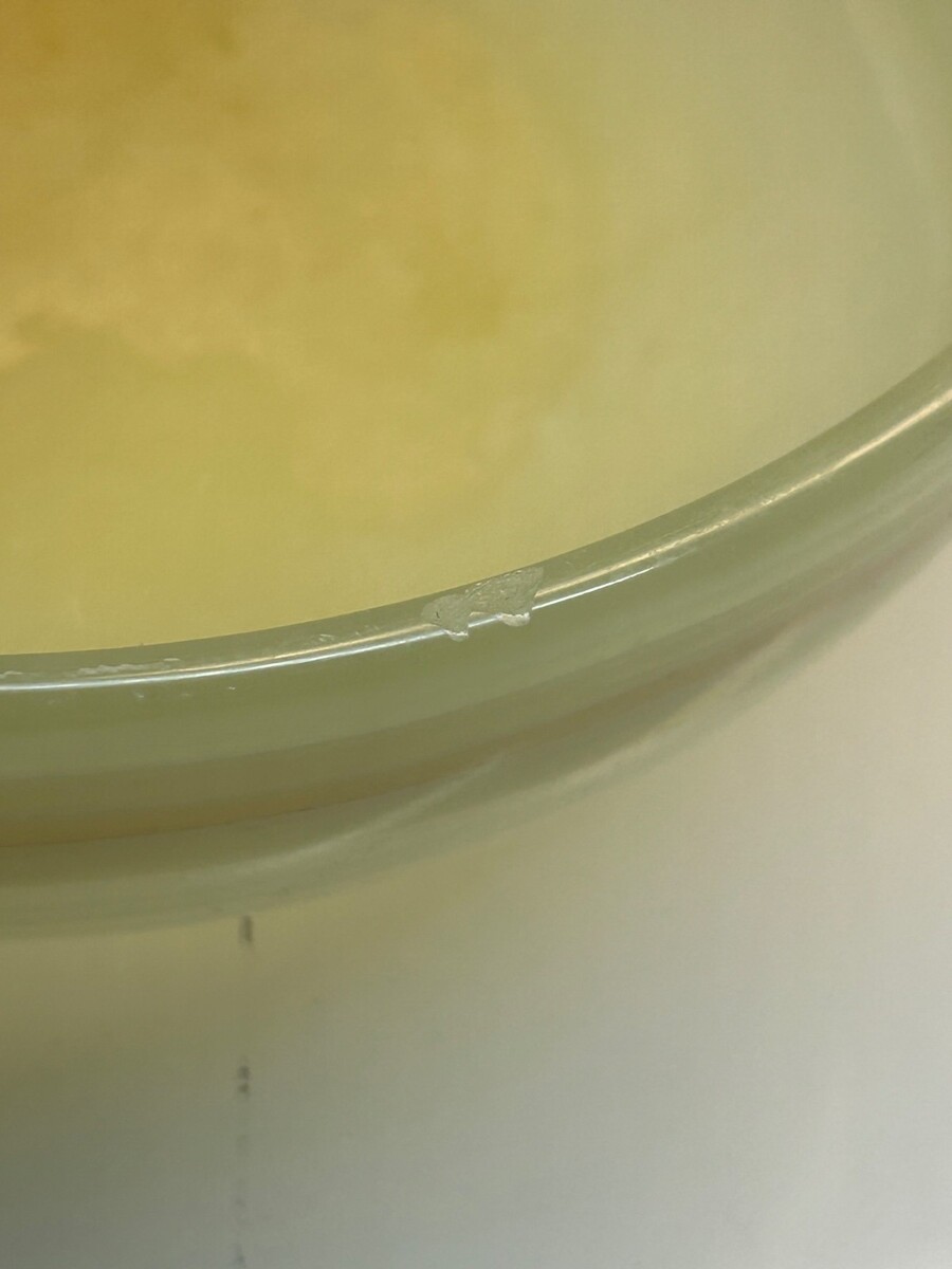 ? Blemishes: There are a few minor chips located on the top lip/rim and along the bottom pedestal base.