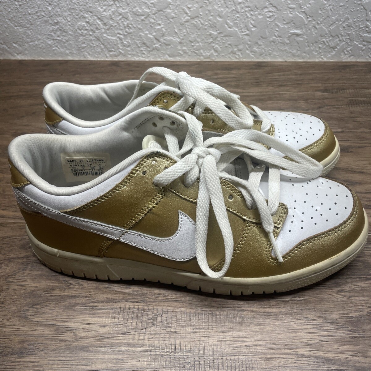 Nike Dunk Low Metallic Gold White Size 5Y W 309601-711 2005 Dunks 050709 KG JD