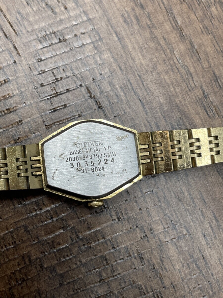 The Vintage Citizen 2030-948793 SMW Analog Quartz Women's Dress Watch is a classic timepiece with a gold stainless steel case and bracelet. It features a solid gold dial with baton indexes and a 12-hour dial, making it perfect for formal or dressy occasions. The watch has a hexagon shape, quartz movement, and right-handed design, making it a stylish and reliable accessory for any woman's collection. With its vintage charm and timeless appeal, this Citizen watch is a beautiful choice for those who appreciate classic and elegant timepieces.