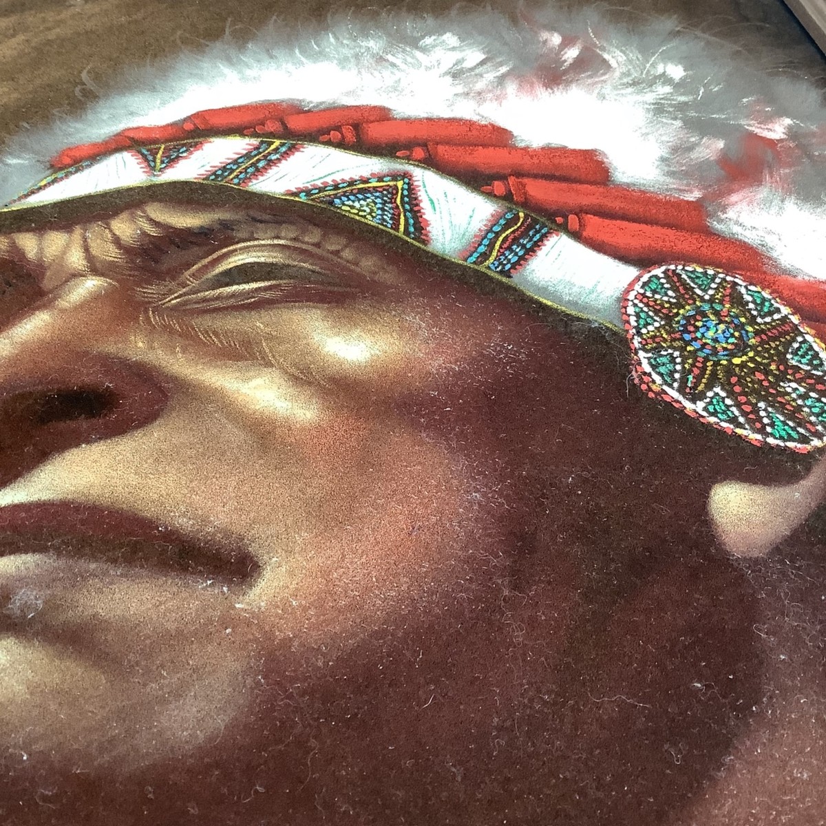 Native American Chief Black Velvet Portrait Painting Framed Vtg Signed Hernandez