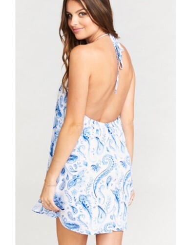 Show Me Your Mumu Blue and White Paisley Sleeveless Halter Dress Sz M